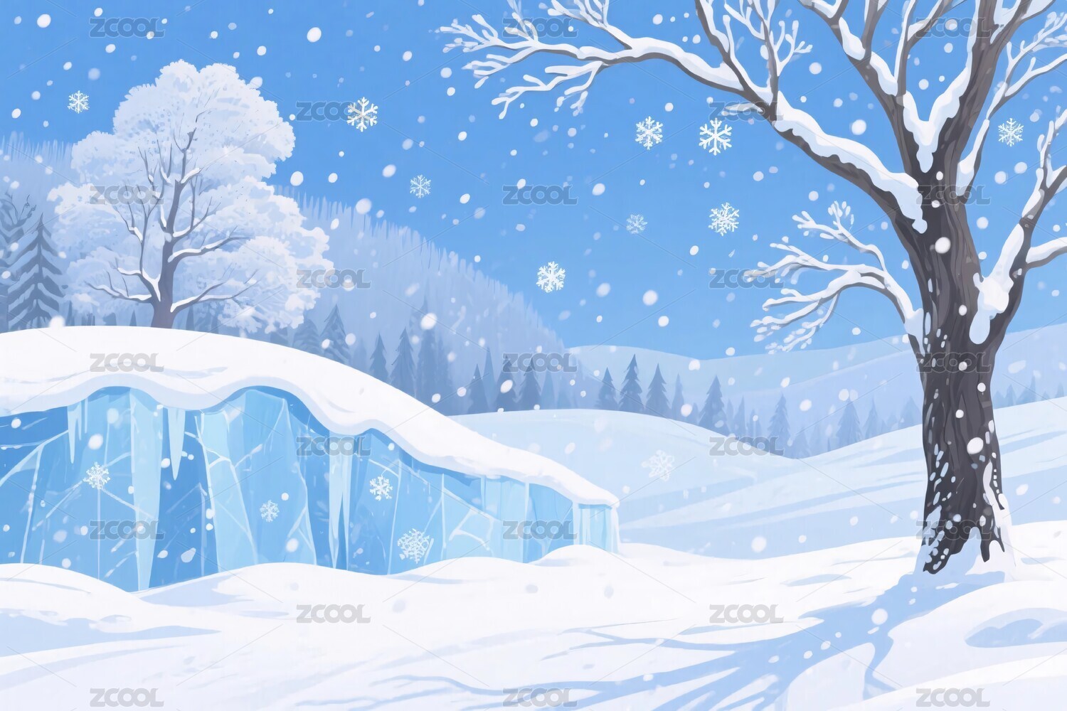 冬日雪景插画
