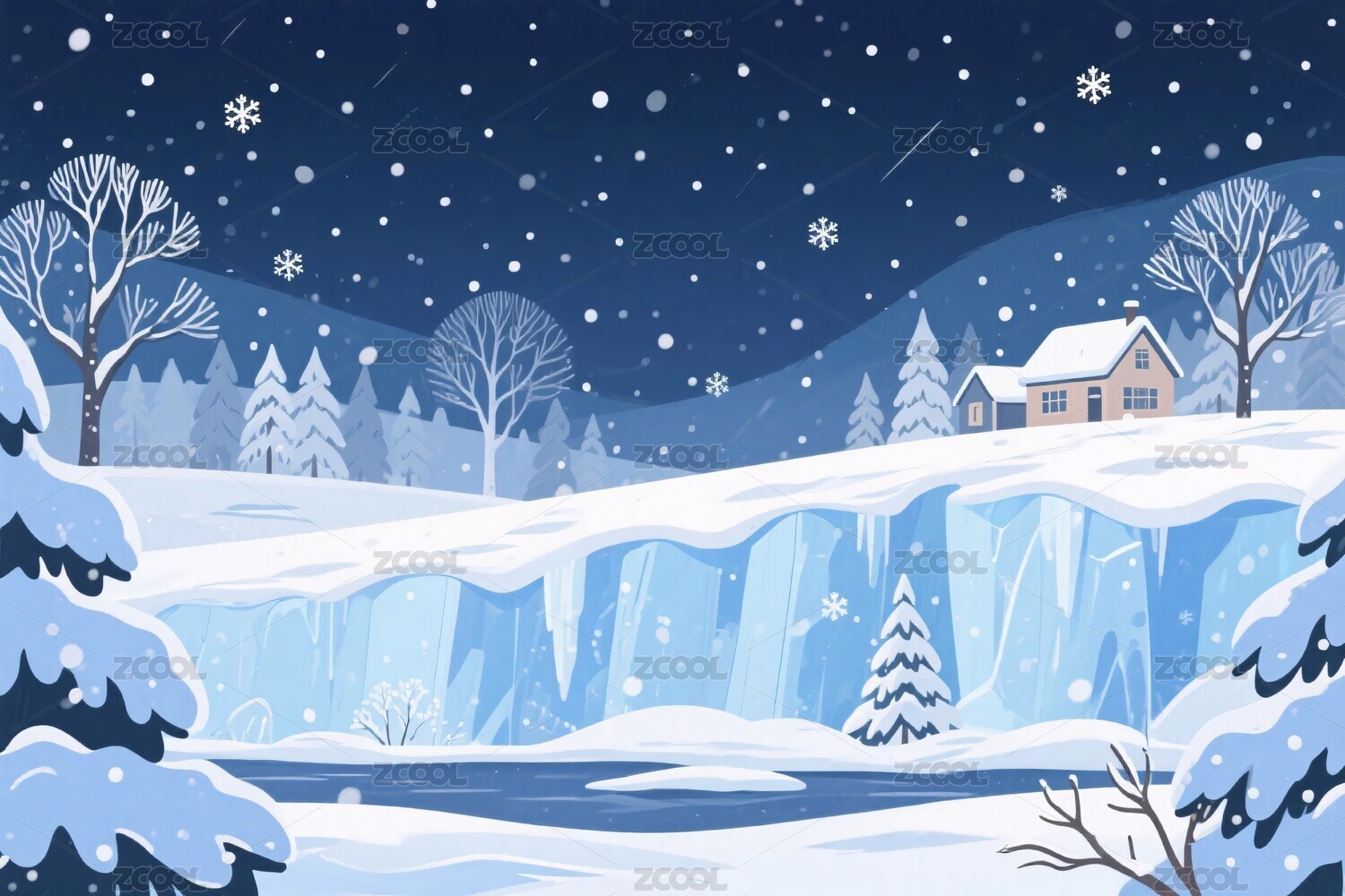 冬季雪景小屋插画