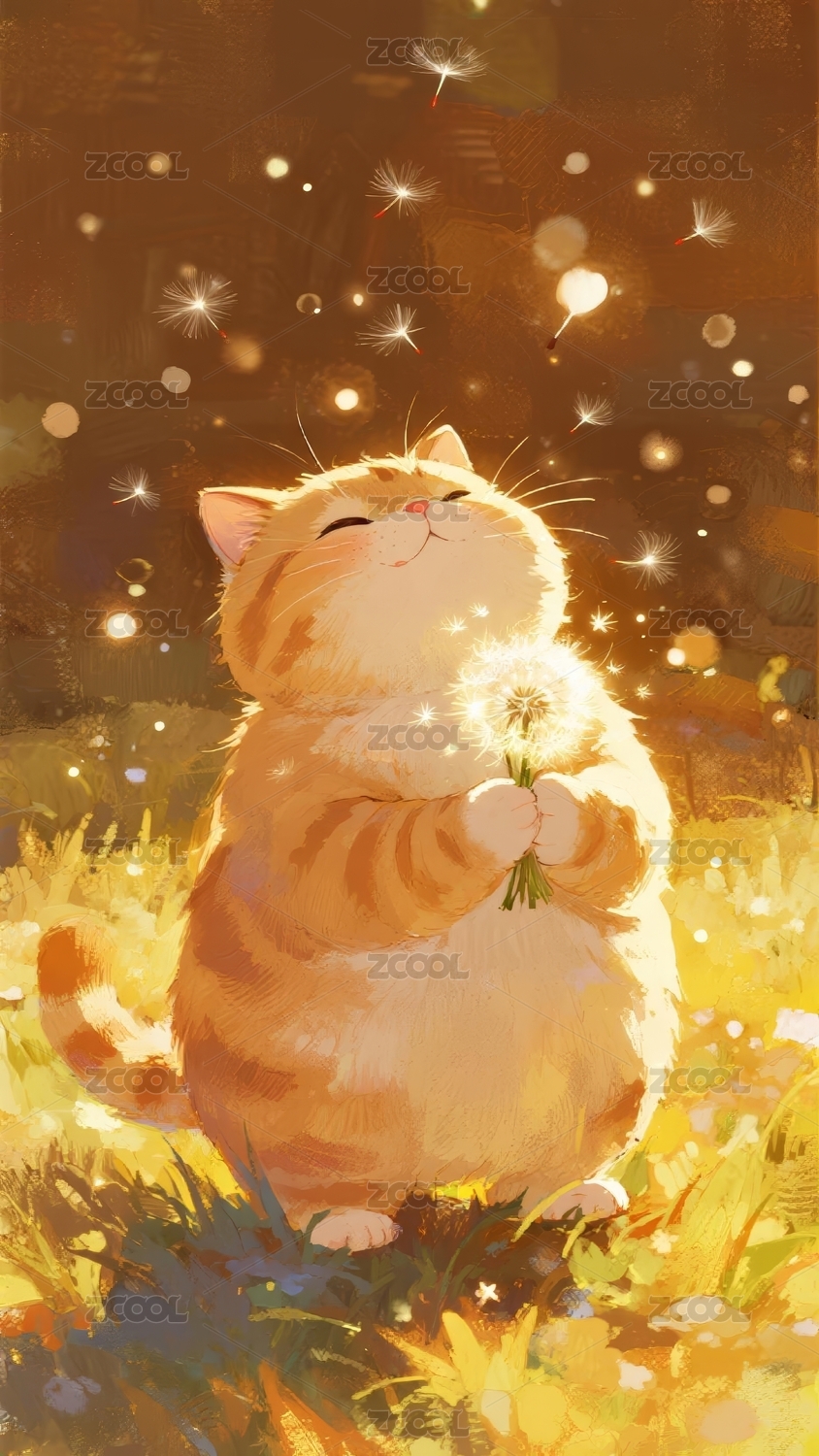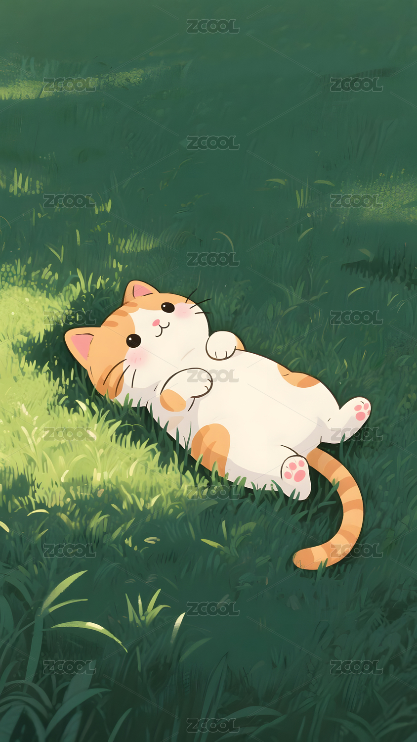草地午睡的卡通猫