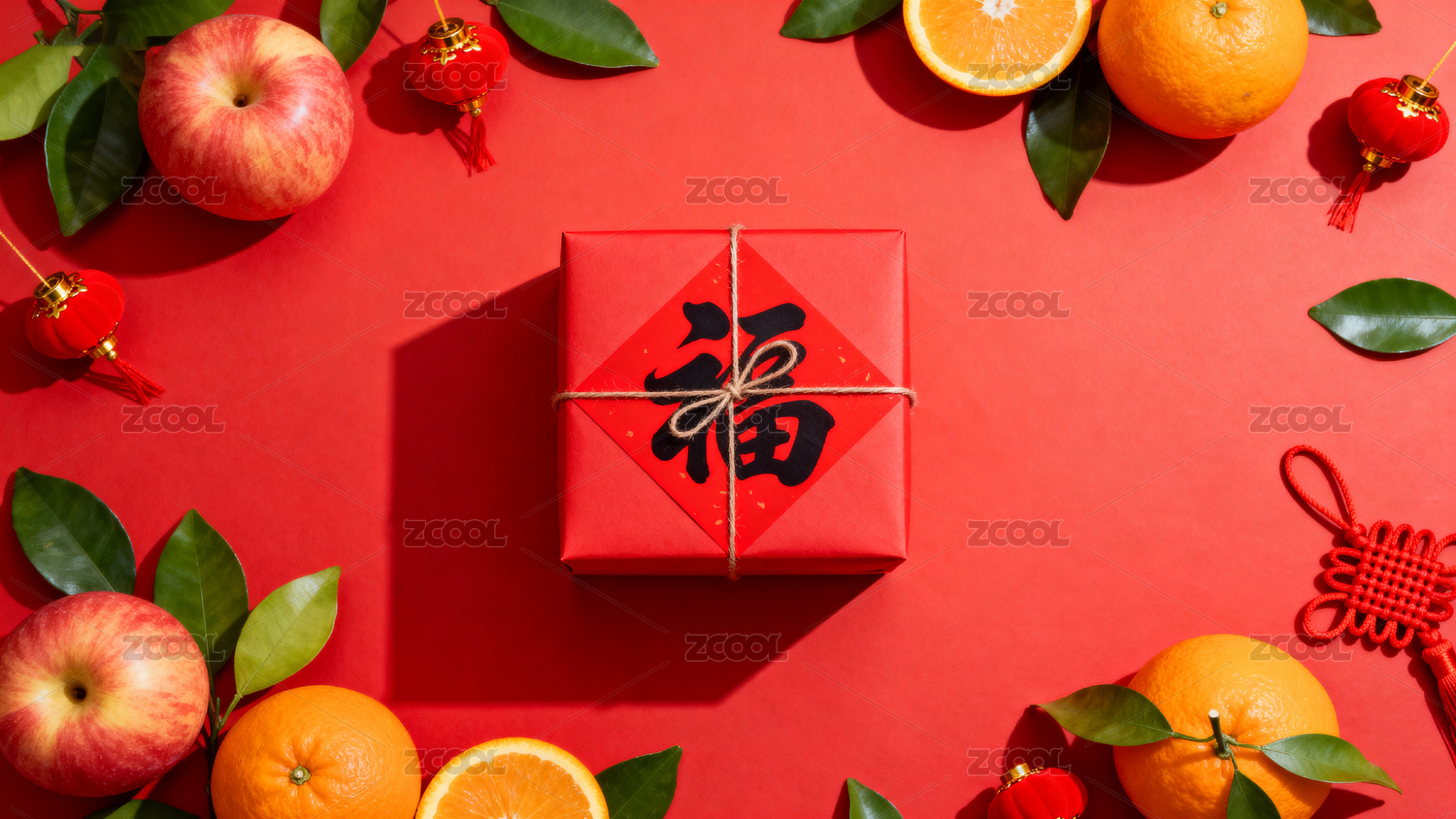 传统,灯笼,红纸,节日,装饰,红色,福,礼盒,苹果,橙子