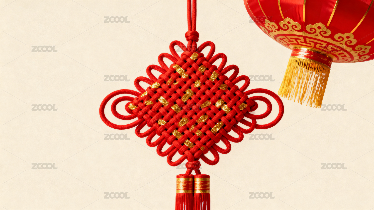 红色中国结与灯笼装饰