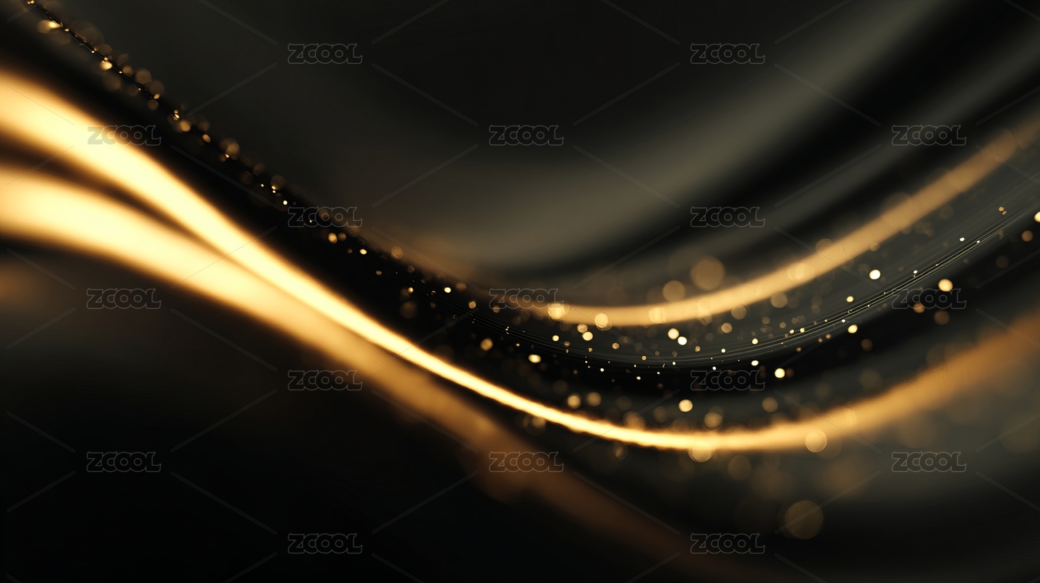 金色波浪线条与光点的抽象背景