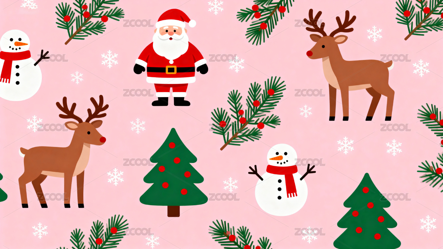 圣诞主题卡通图案包含圣诞老人驯鹿和雪人