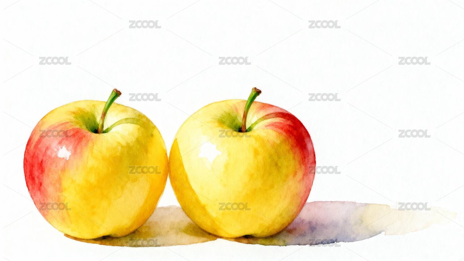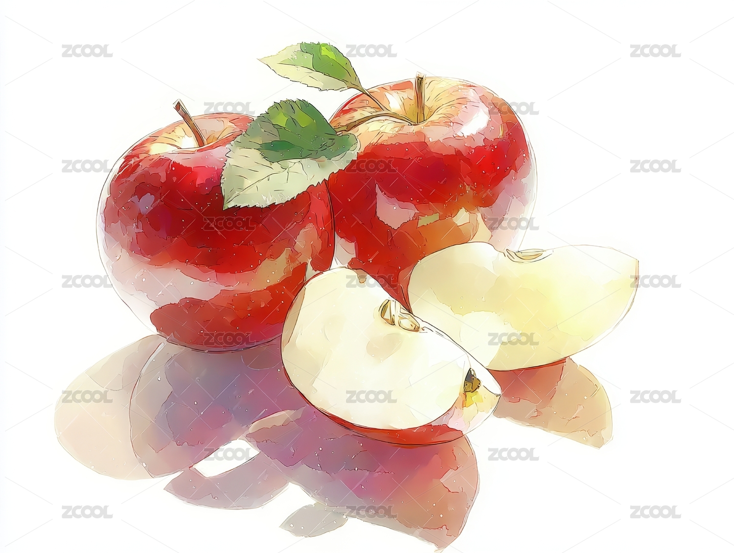 白底清新明亮一筐刚摘的红苹果插画绘画