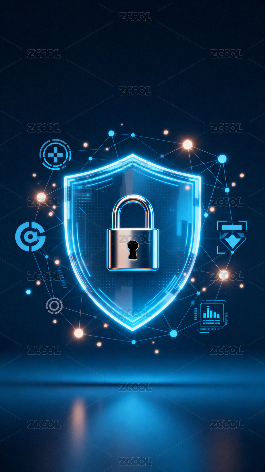 科技防护盾与锁形图标