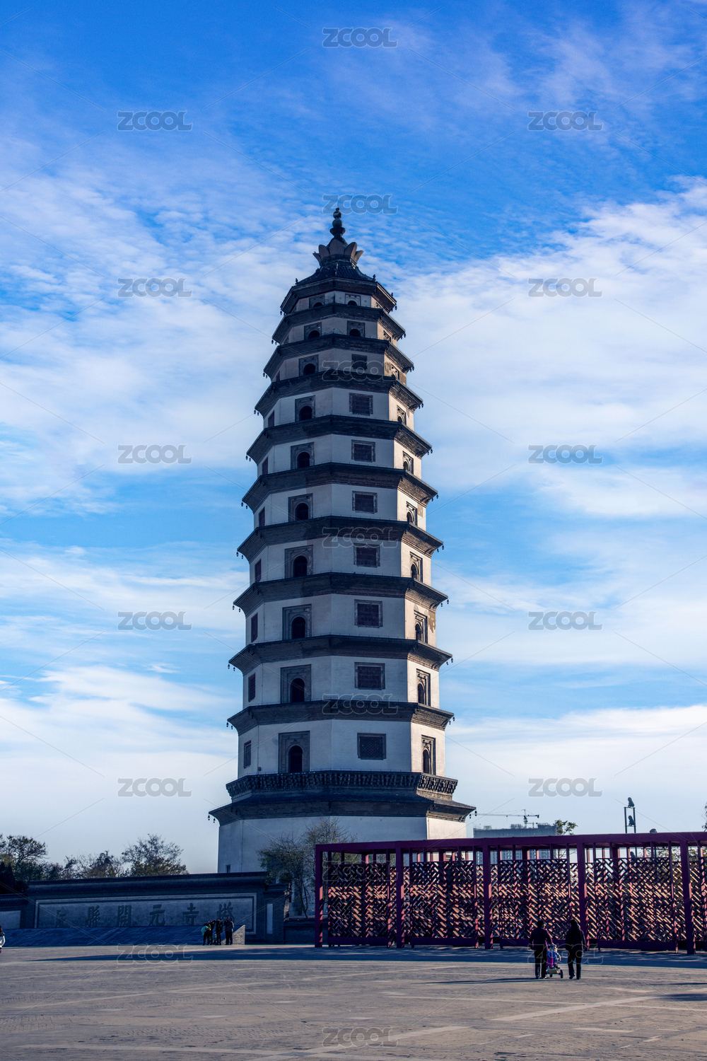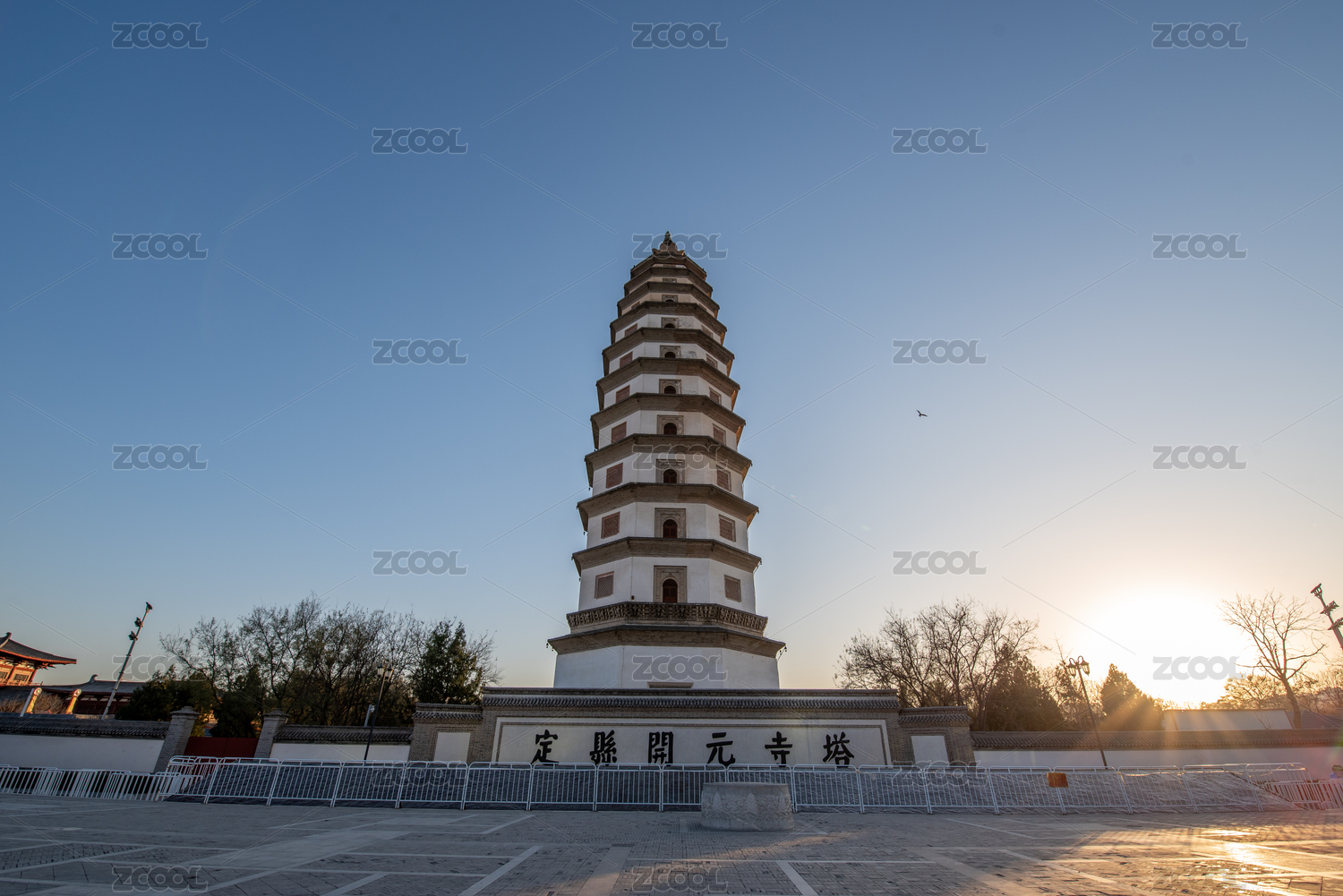 河北定州开元寺塔(定州塔)广场黄昏夜景