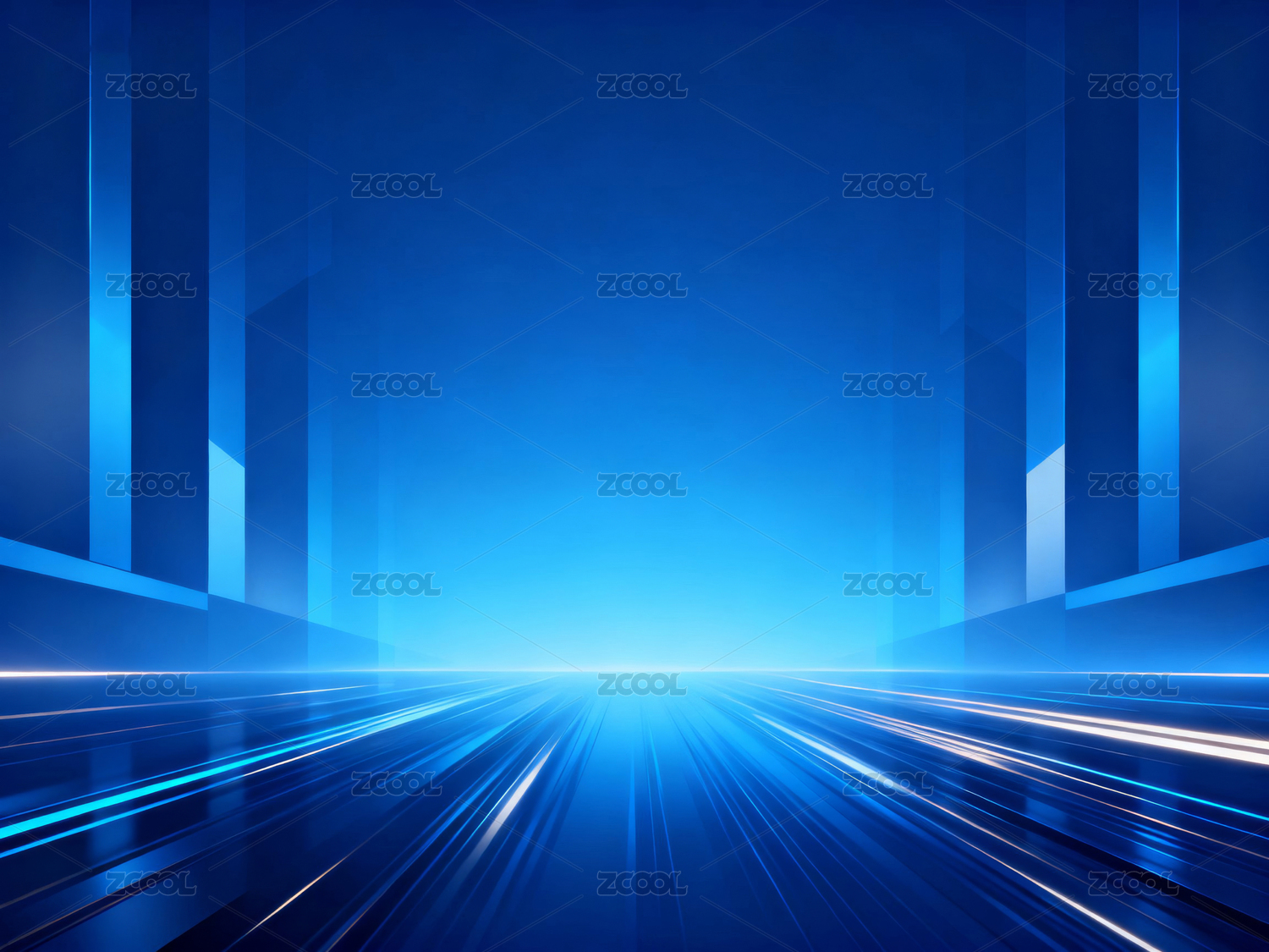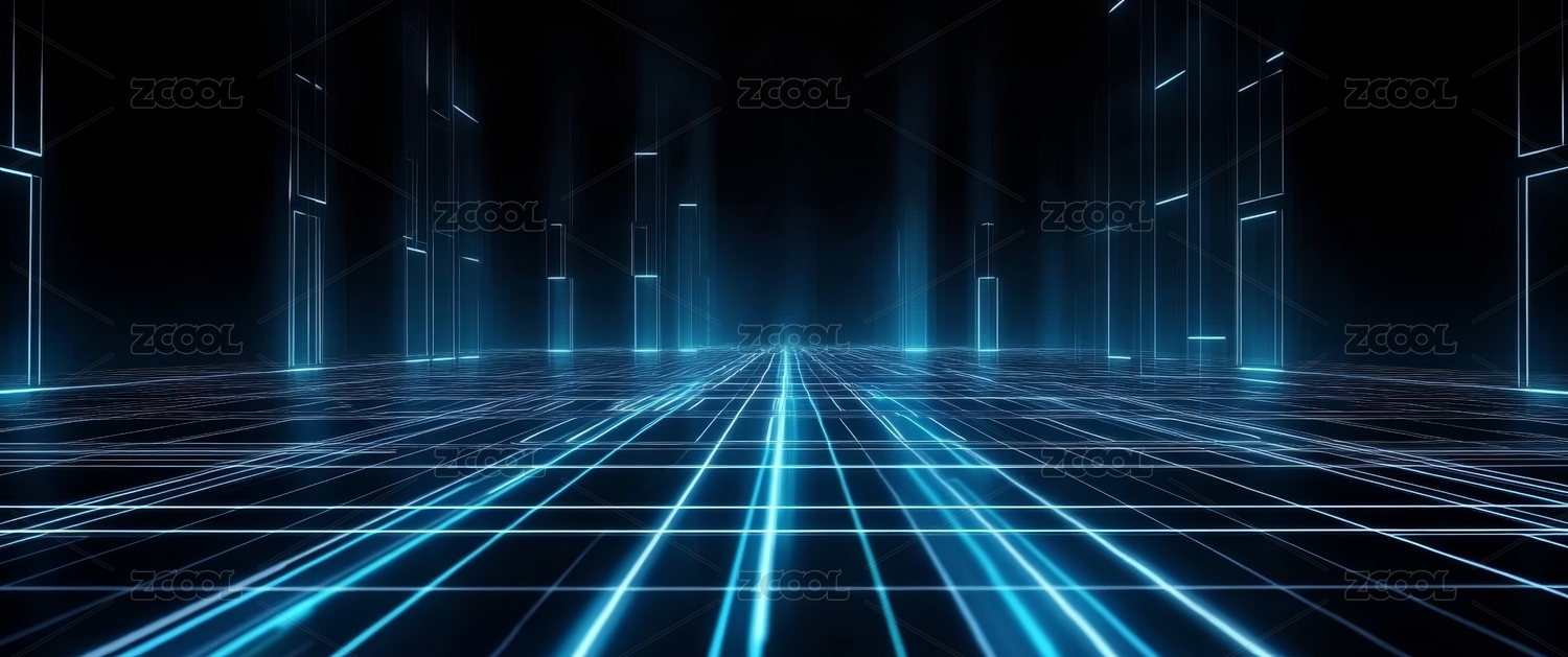 蓝色光带延伸的未来感通道