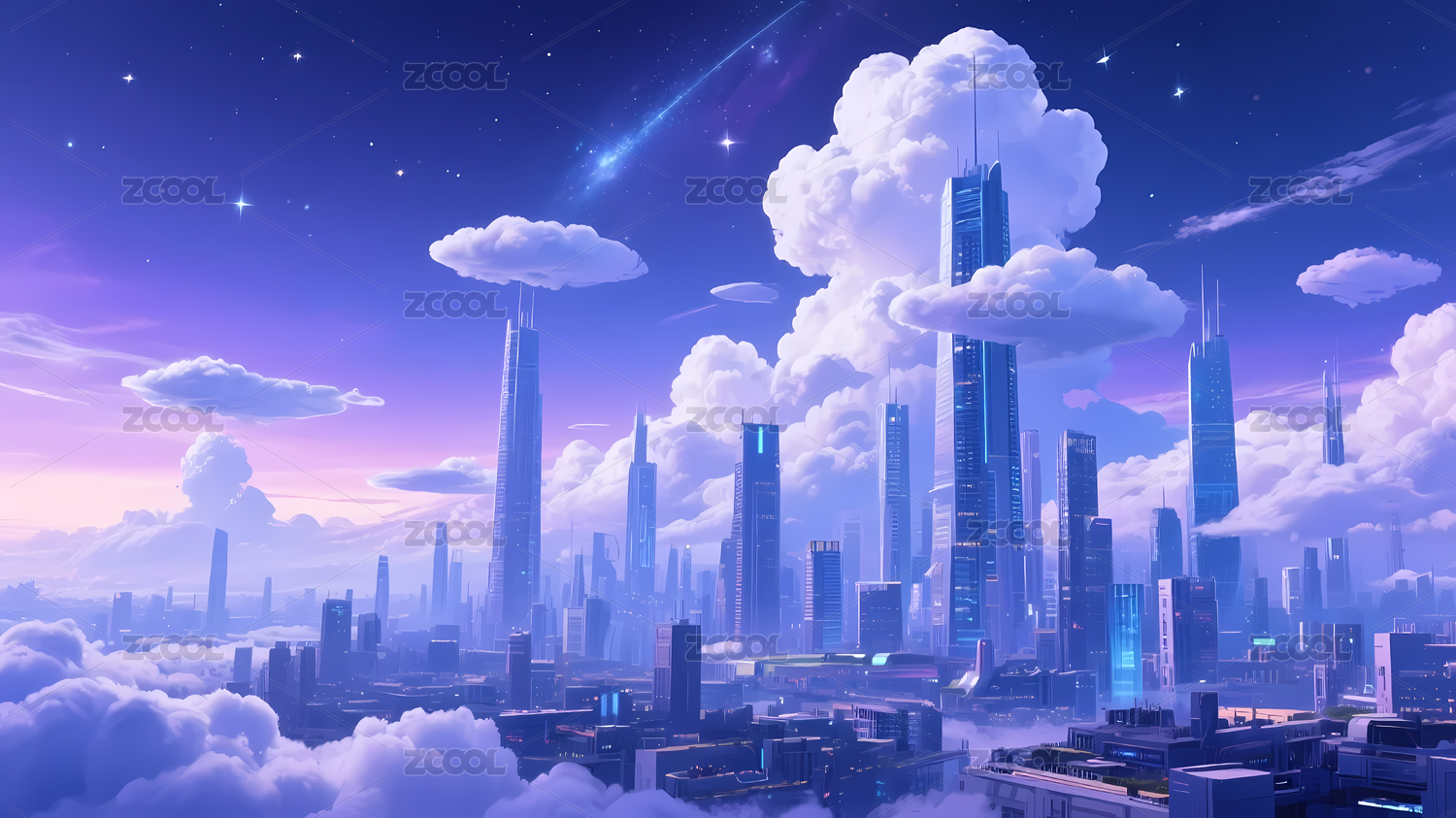 数码科技蓝白色智慧城市智能建筑插画海报背