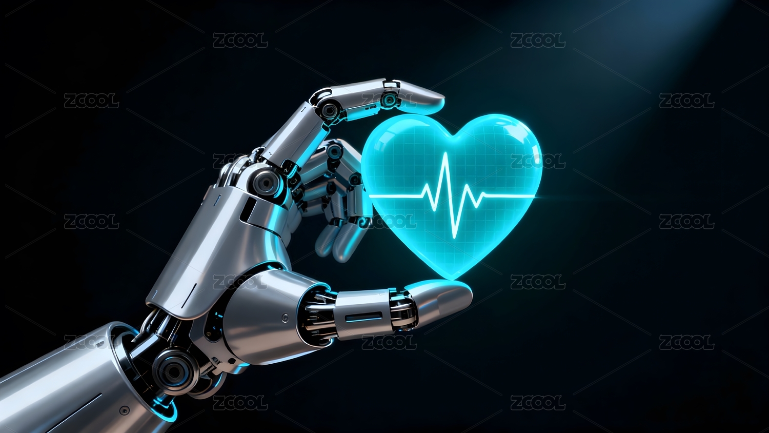机械手与心电图符号科技感图像