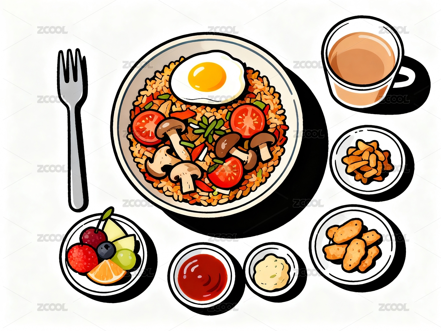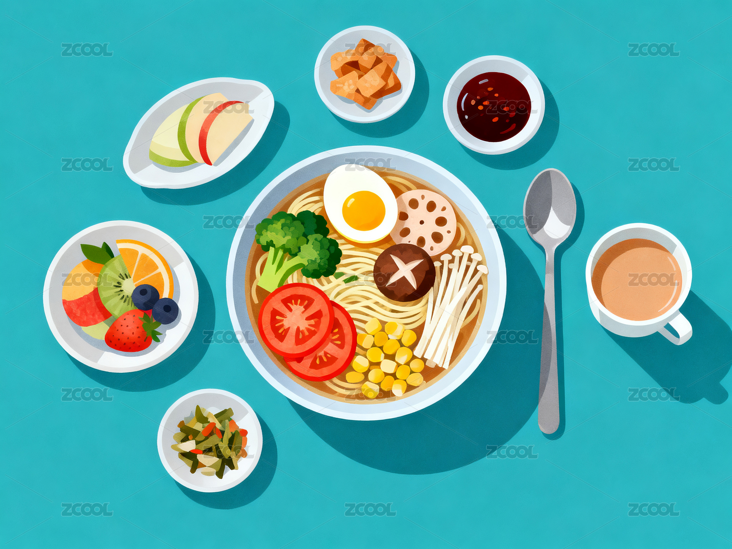 健康午餐美味小吃节日文化早餐晚餐美食插画