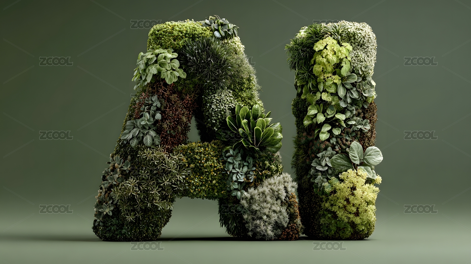 绿植AI字样 创意艺术 柔和氛围