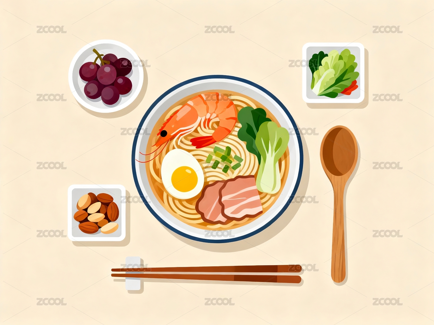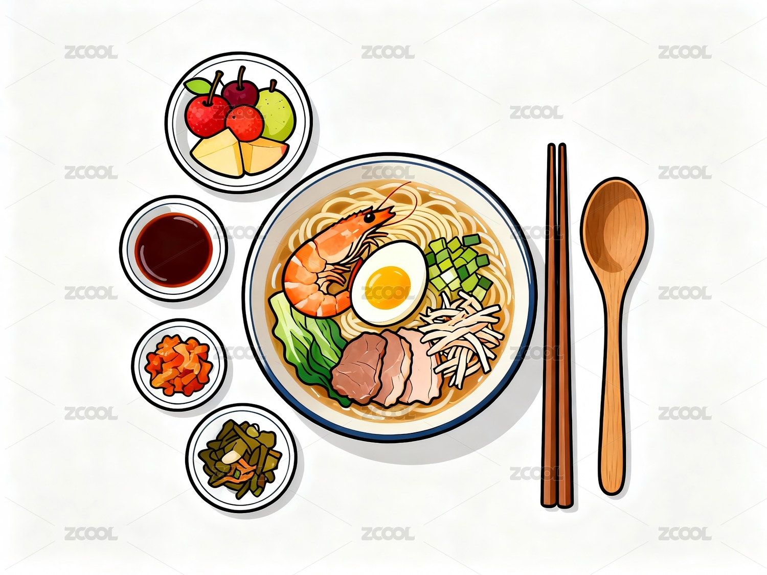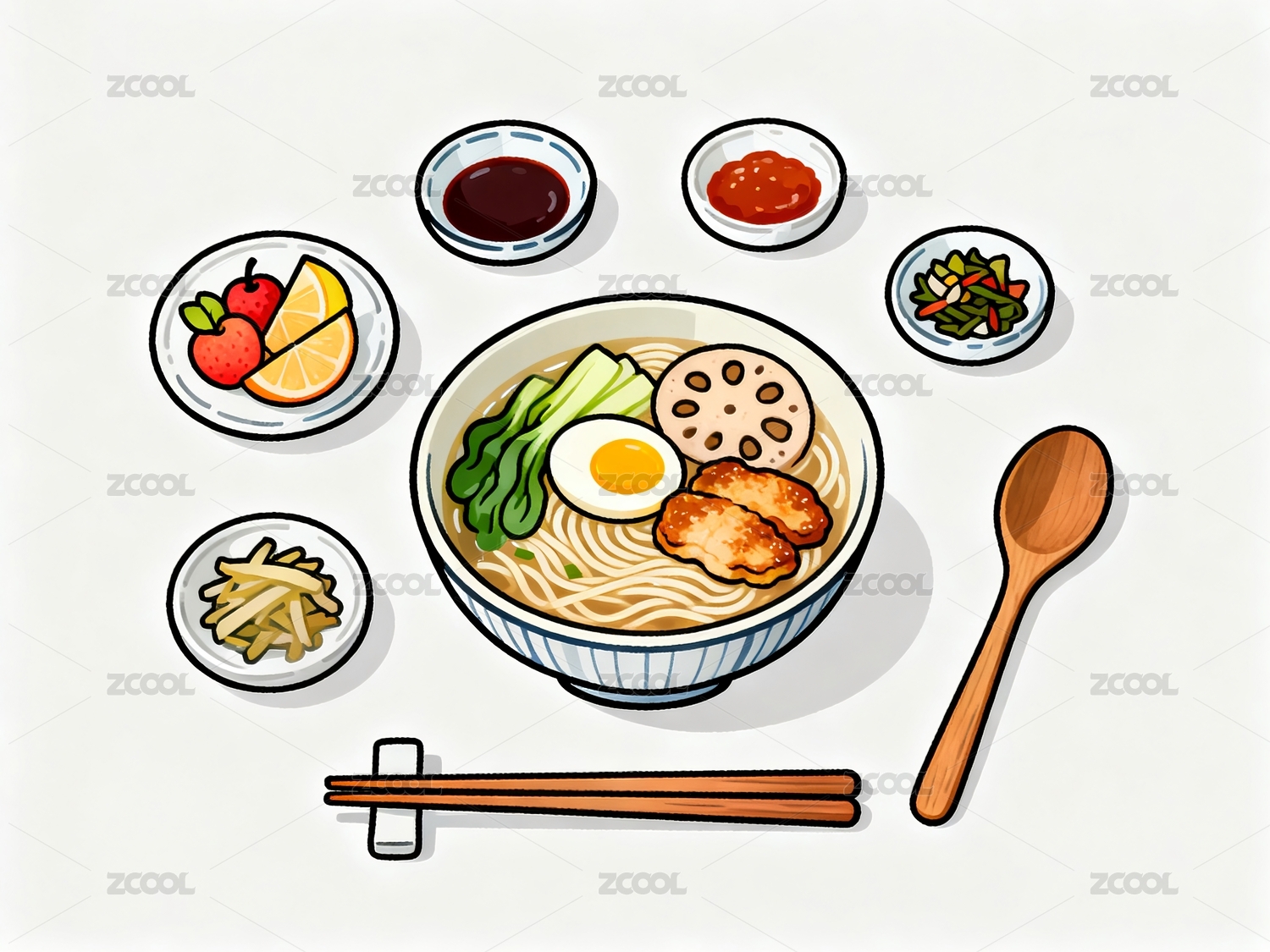 碗面配菜筷子餐具搭配