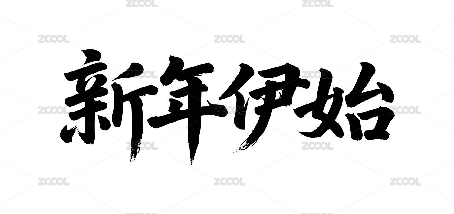 新年伊始矢量书法手写毛笔字
