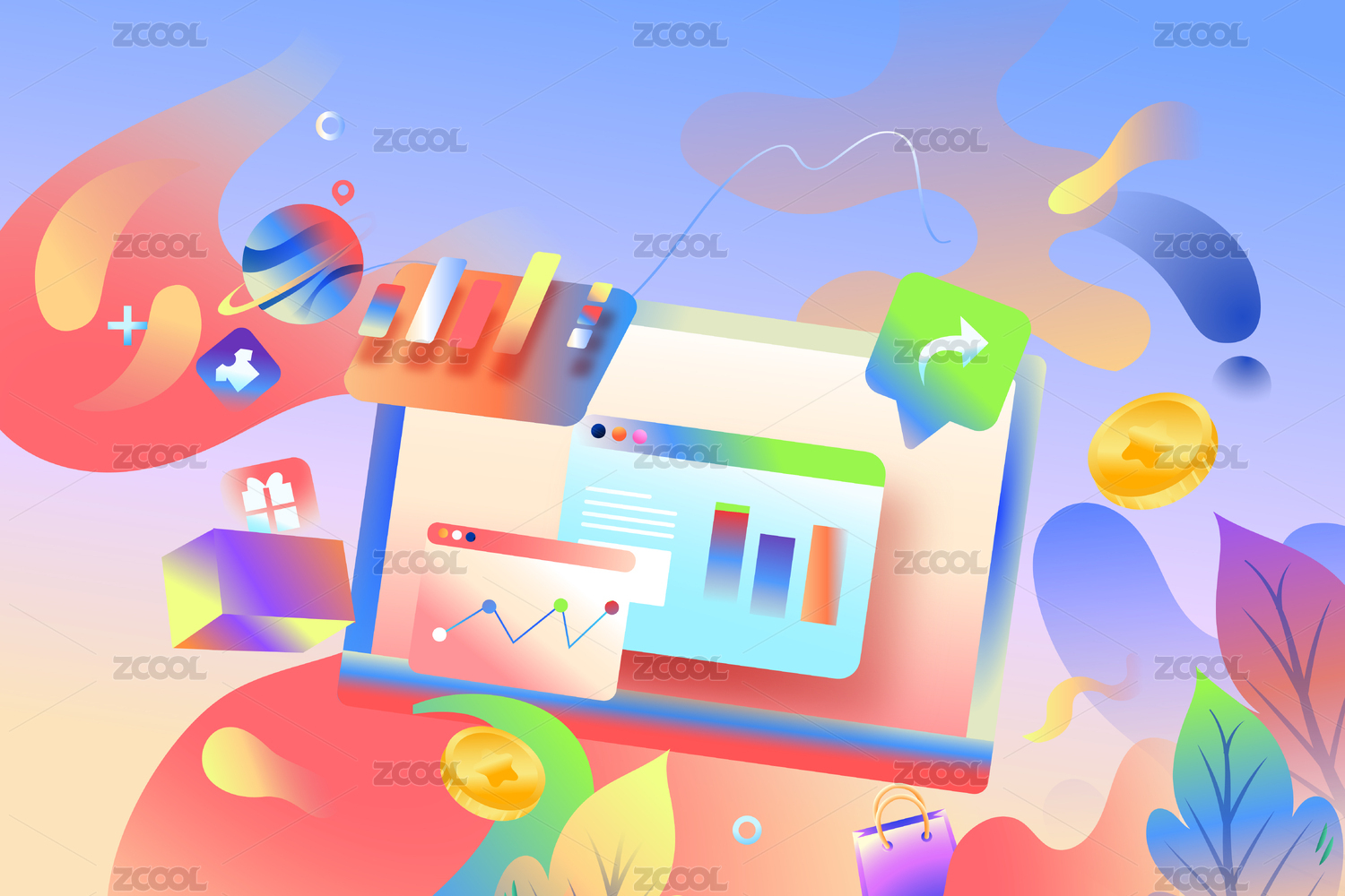 电商,购物,娱乐,休闲,背景,卡通,渐变,扁平,矢量,插画