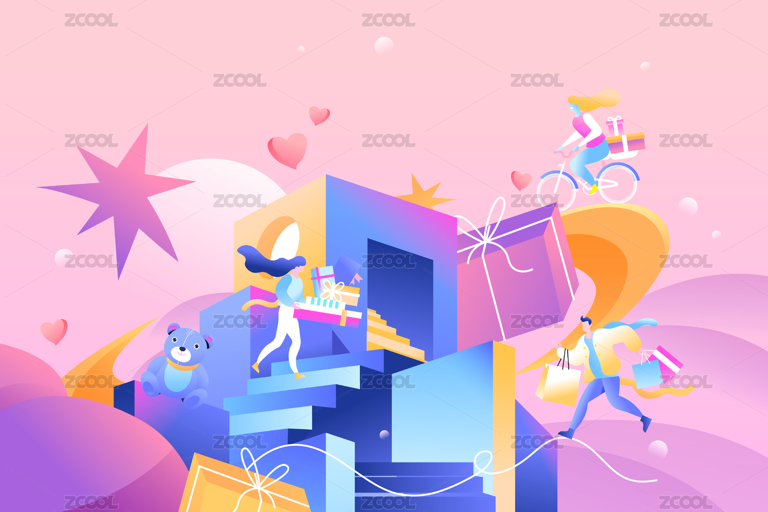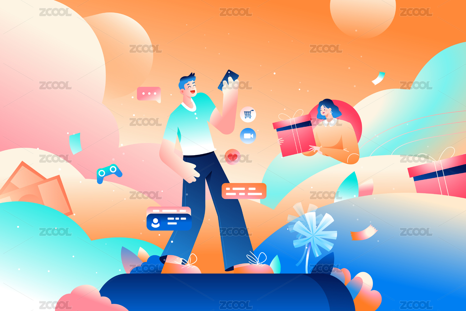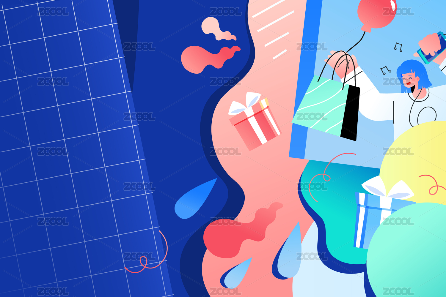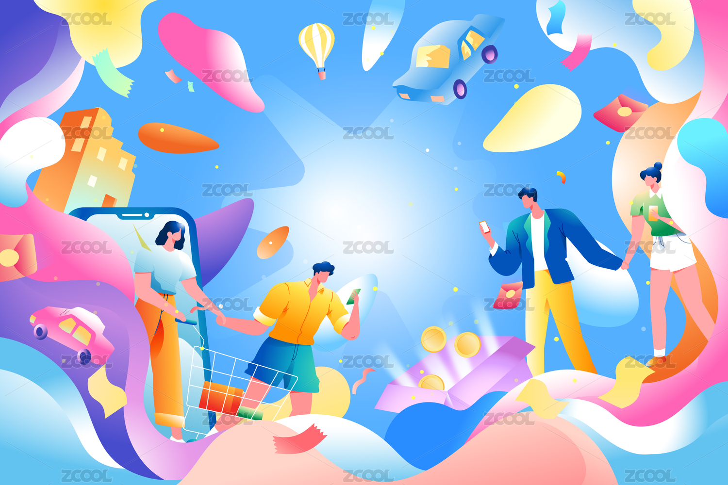 电商,购物,娱乐,休闲,背景,卡通,渐变,扁平,矢量,插画