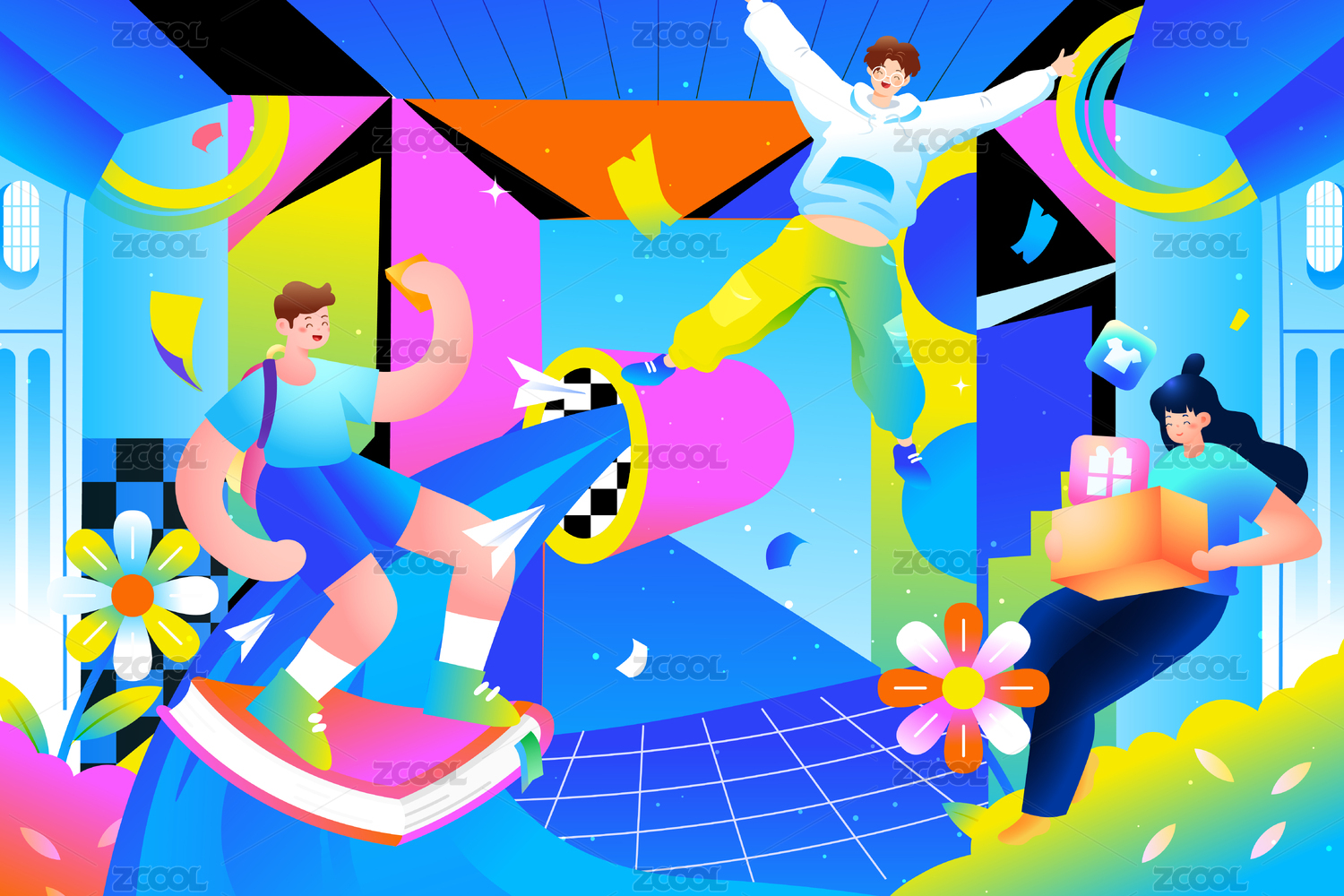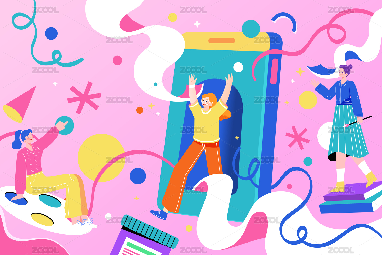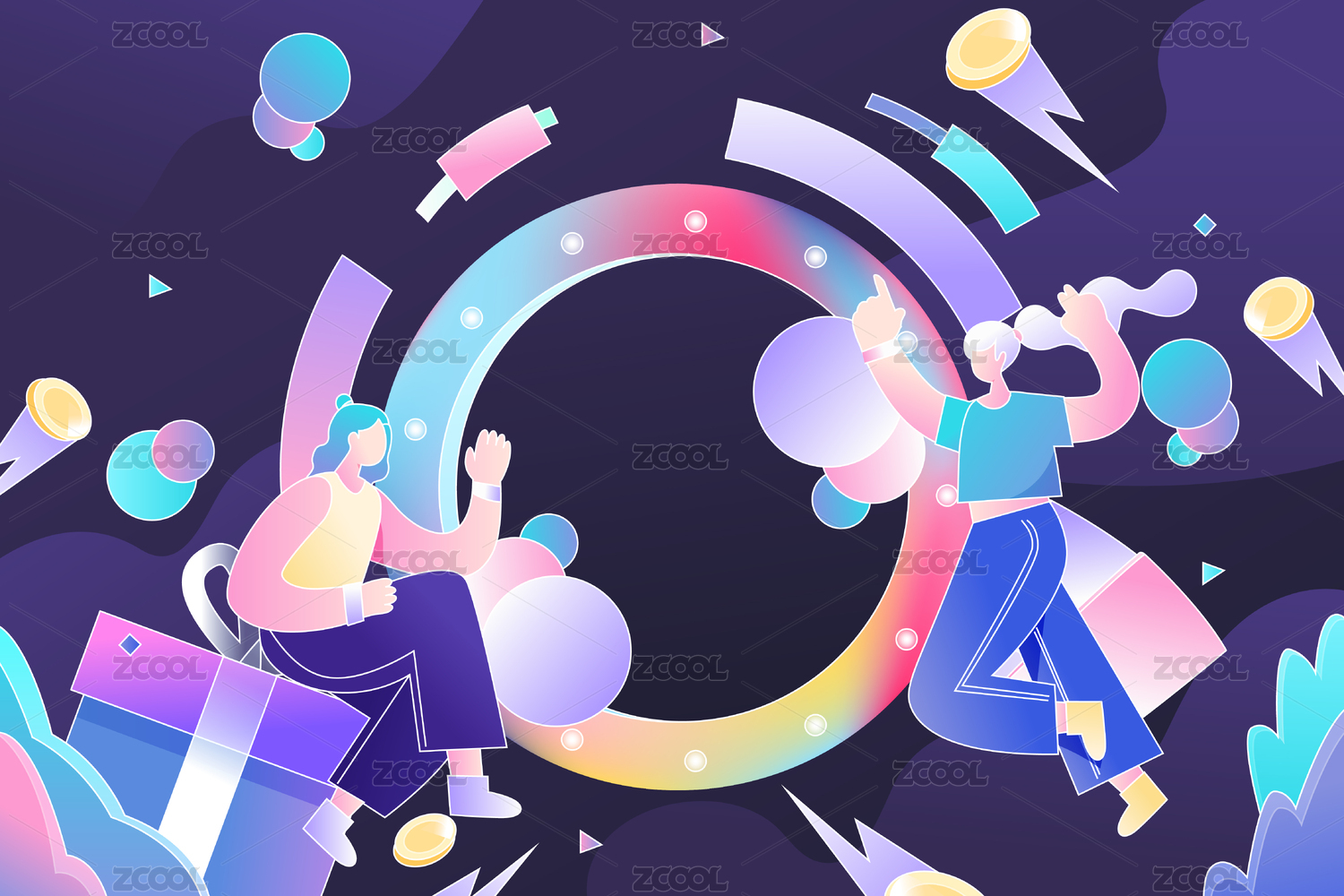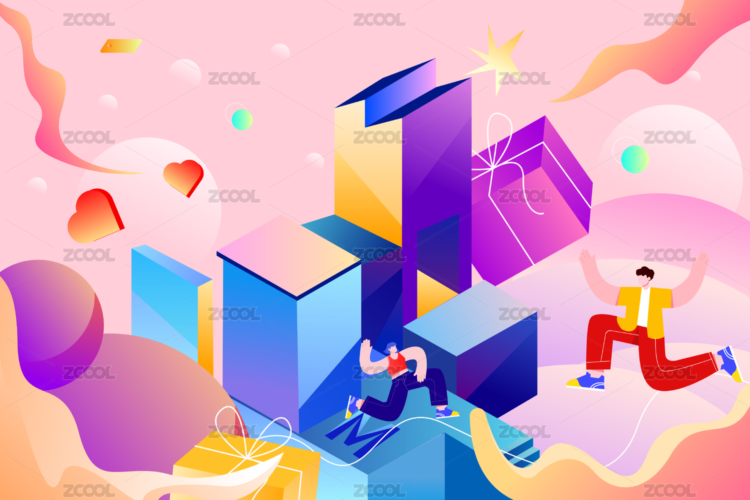 电商,购物,娱乐,休闲,背景,卡通,渐变,扁平,矢量,插画