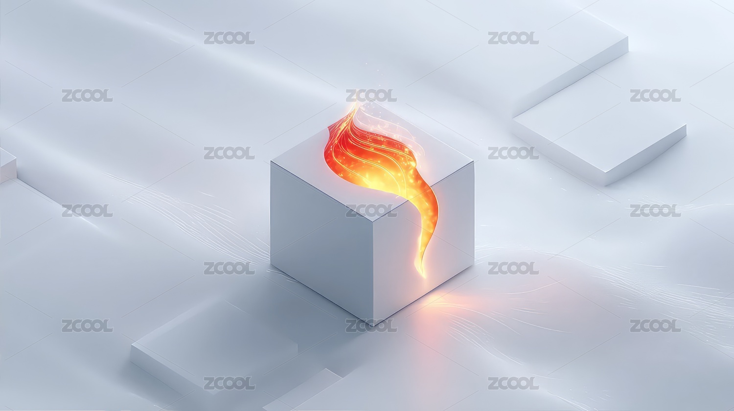 火焰从白色立方体中喷发科幻感十足
