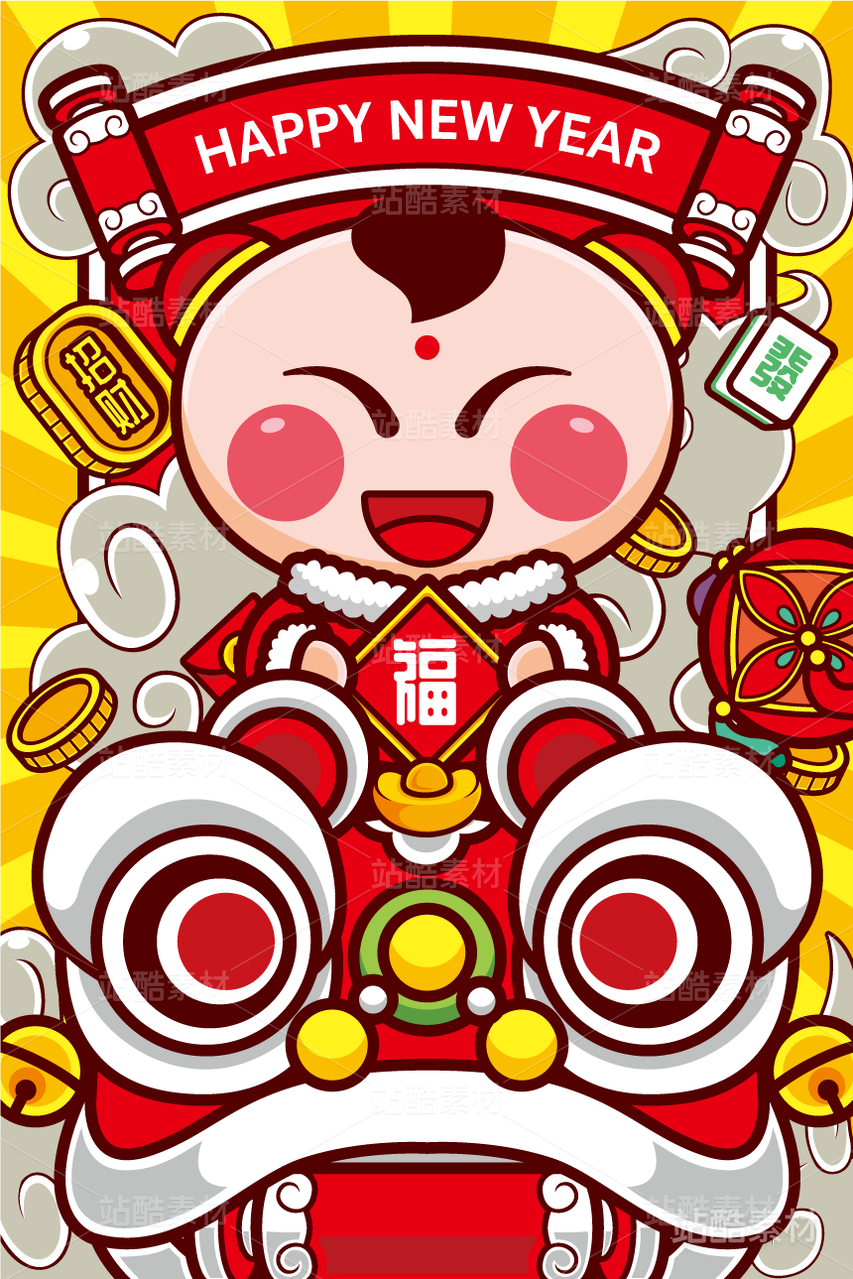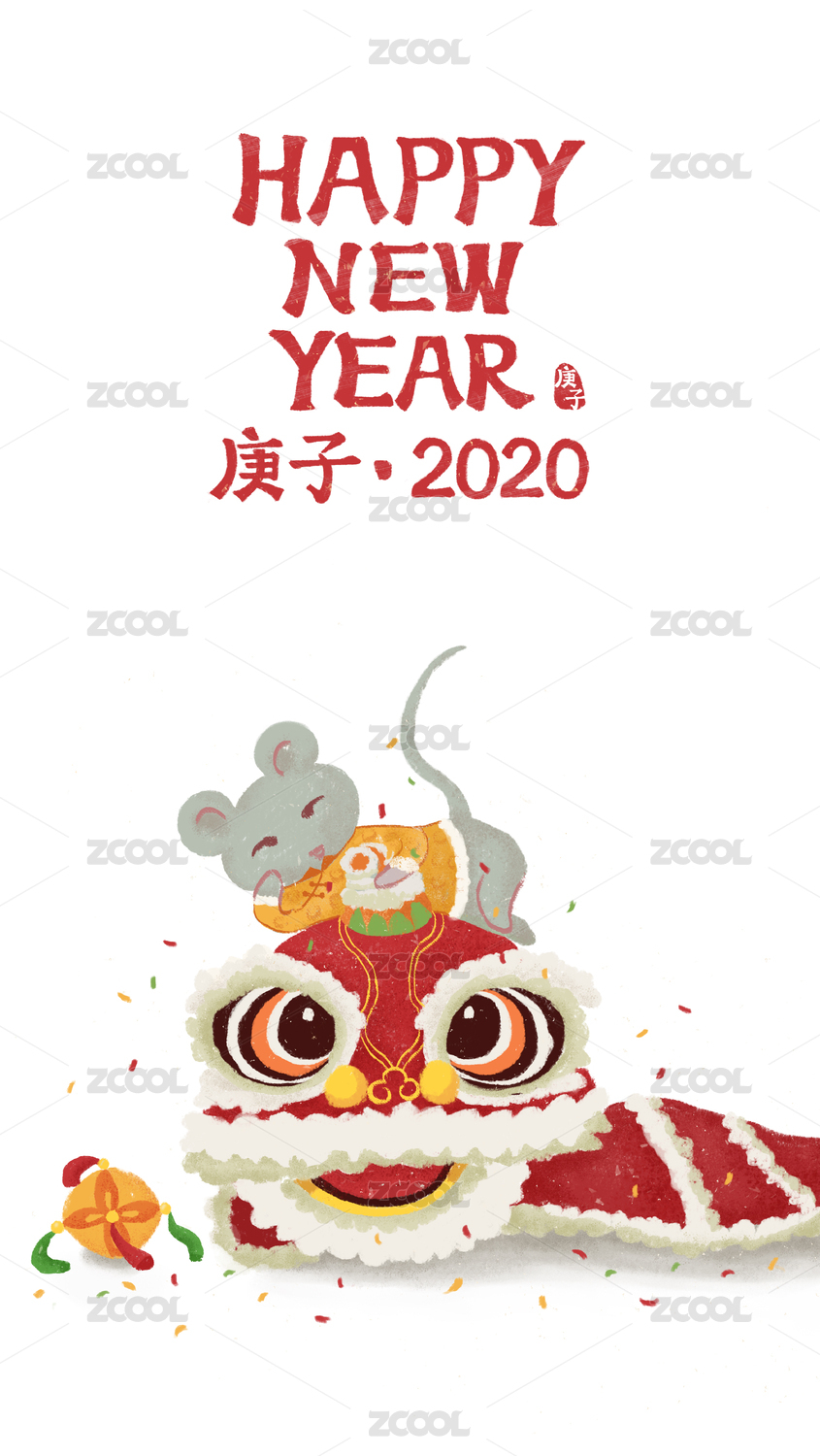 2020新年快乐鼠年舞狮——手绘插画