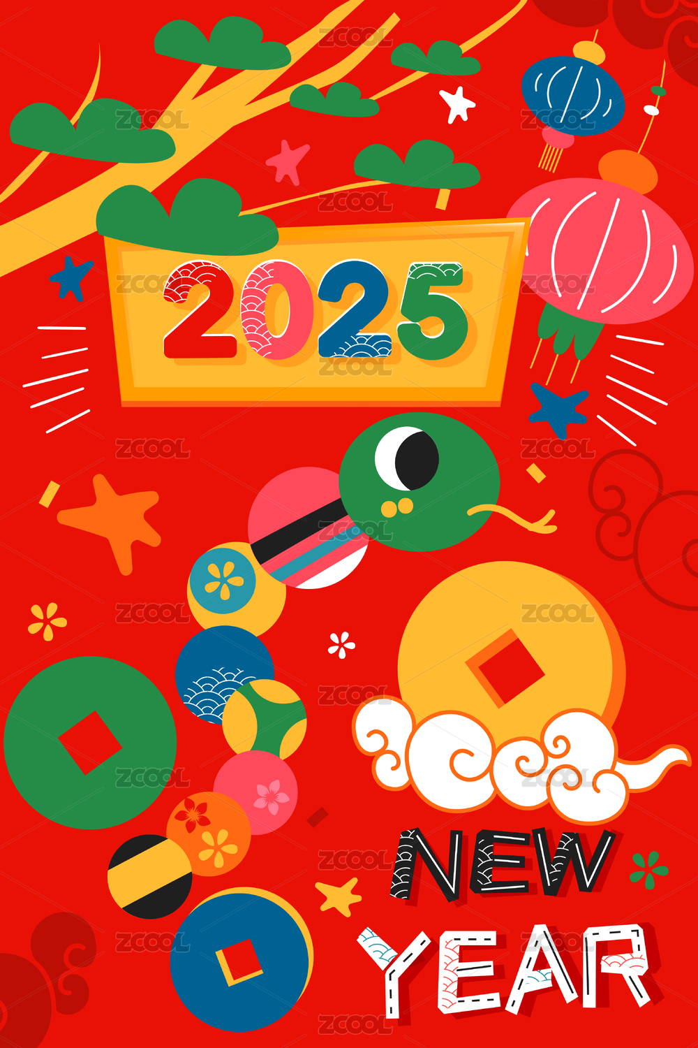 2025年蛇年矢量插画