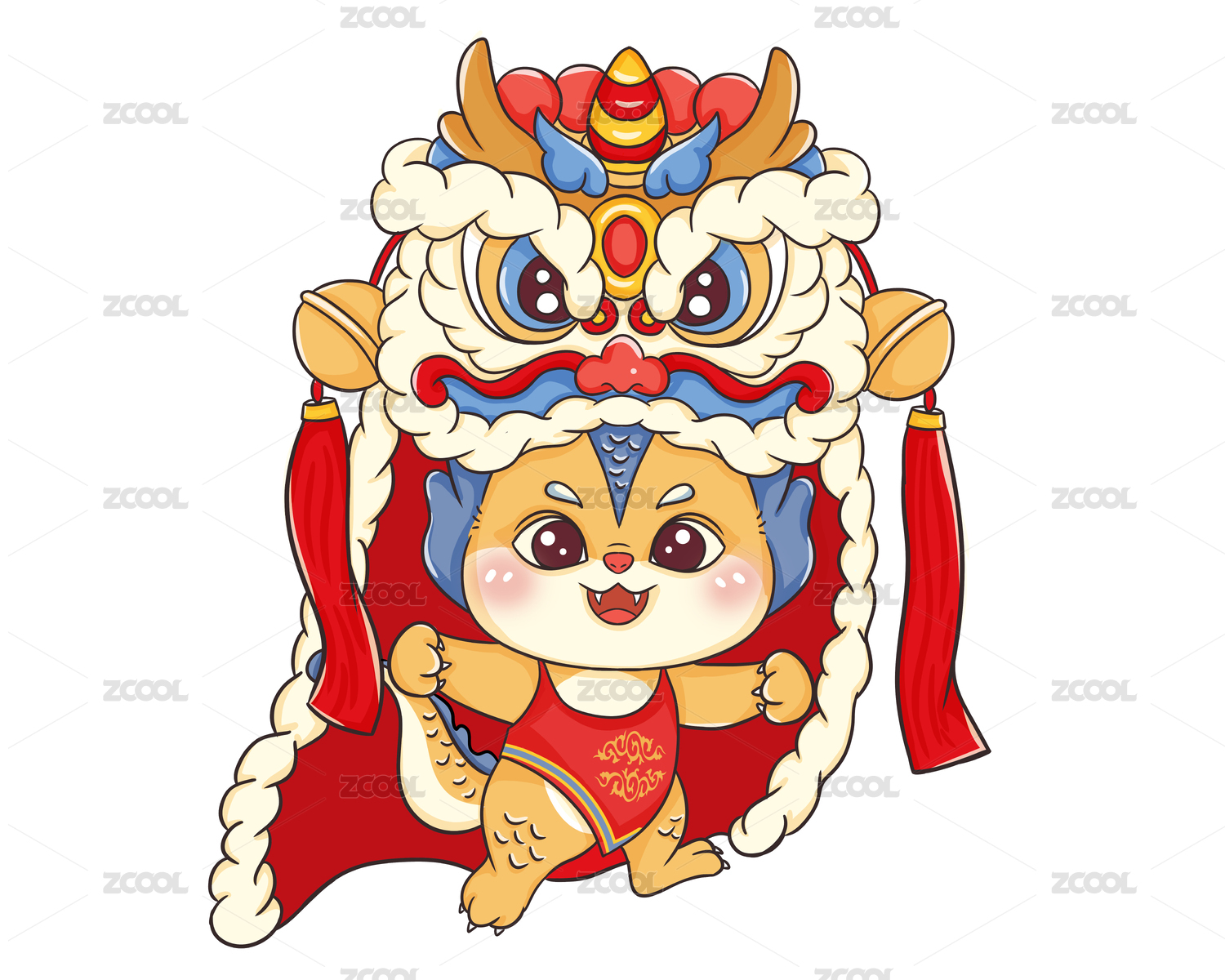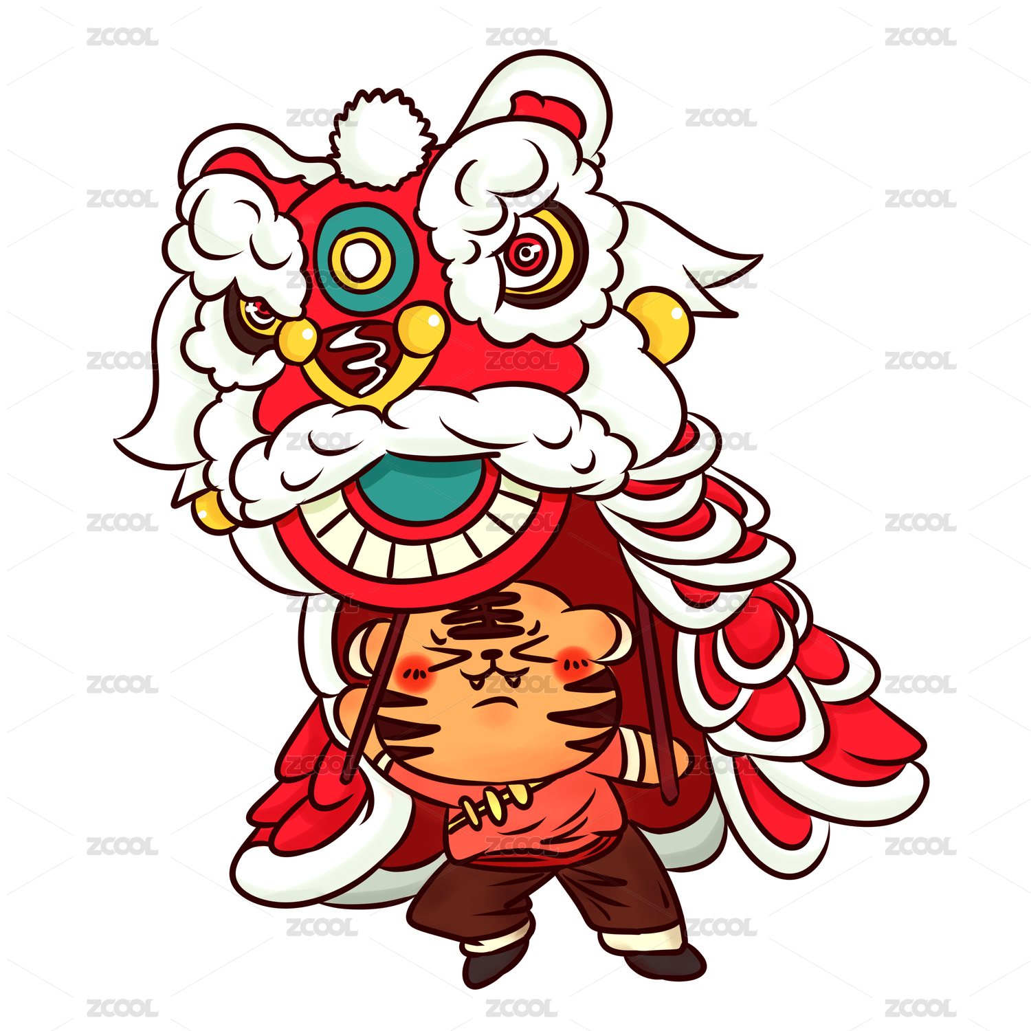 虎年新年老虎舞狮活动习俗红色喜庆插画