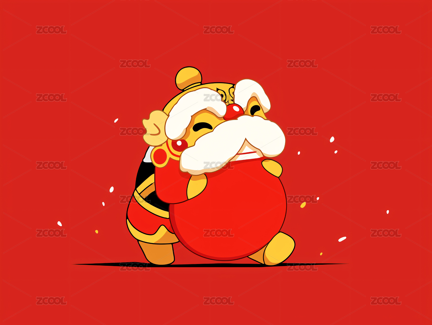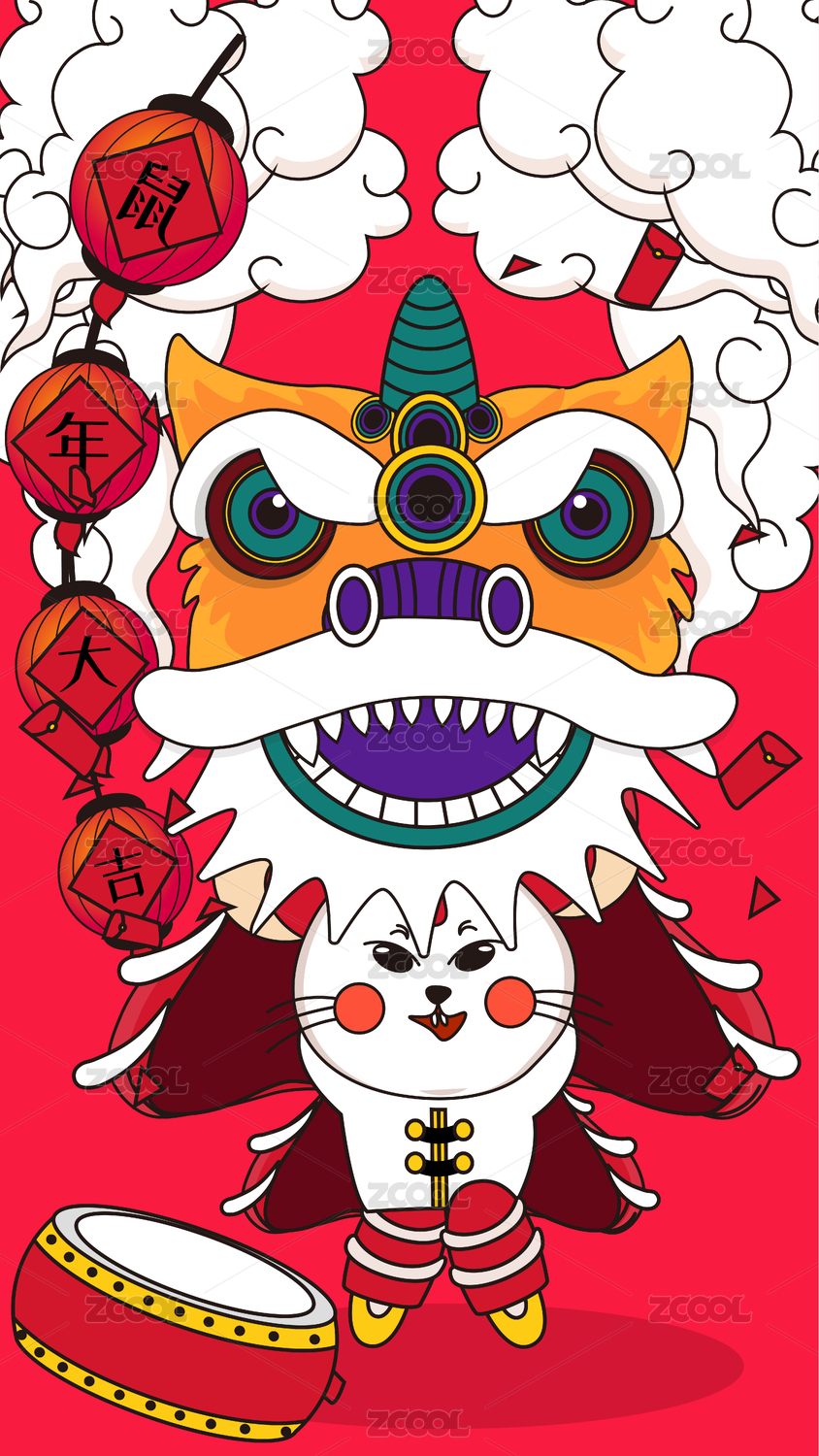 卡通的小老鼠在舞狮,庆祝新年2020年鼠年春节海报插画背景