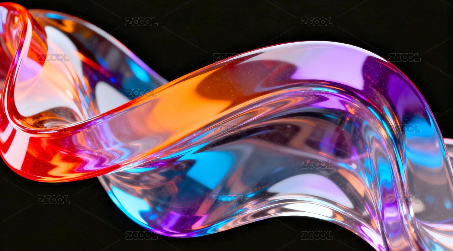 多彩渐变的流动液体,玻璃质感,抽象背景