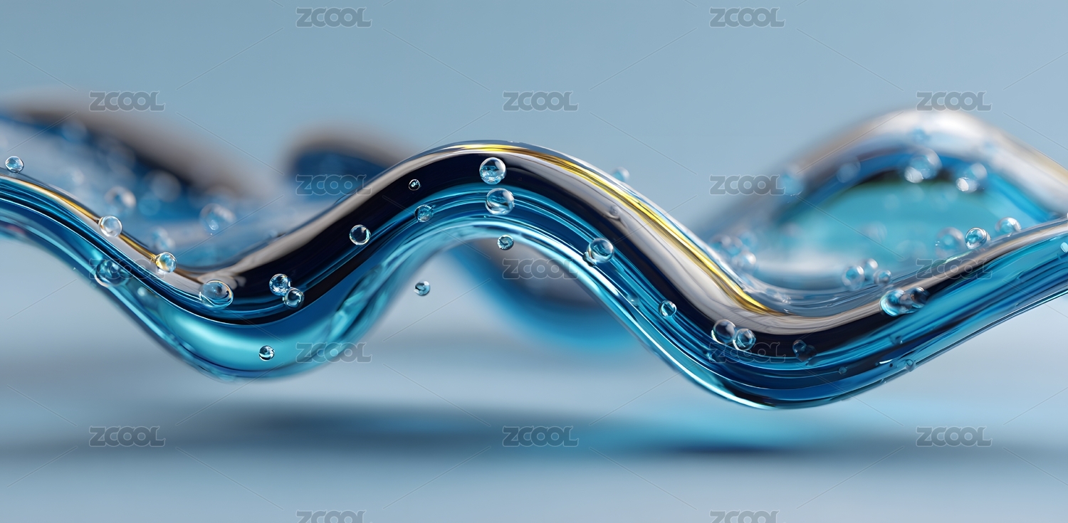 蓝色水流舞动柔美,纯净清澈抽象意境