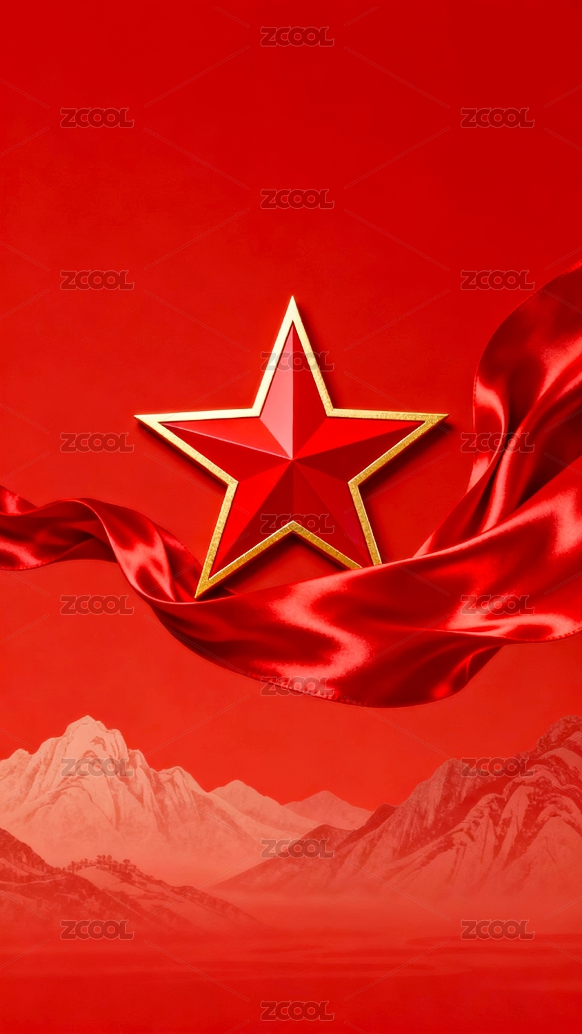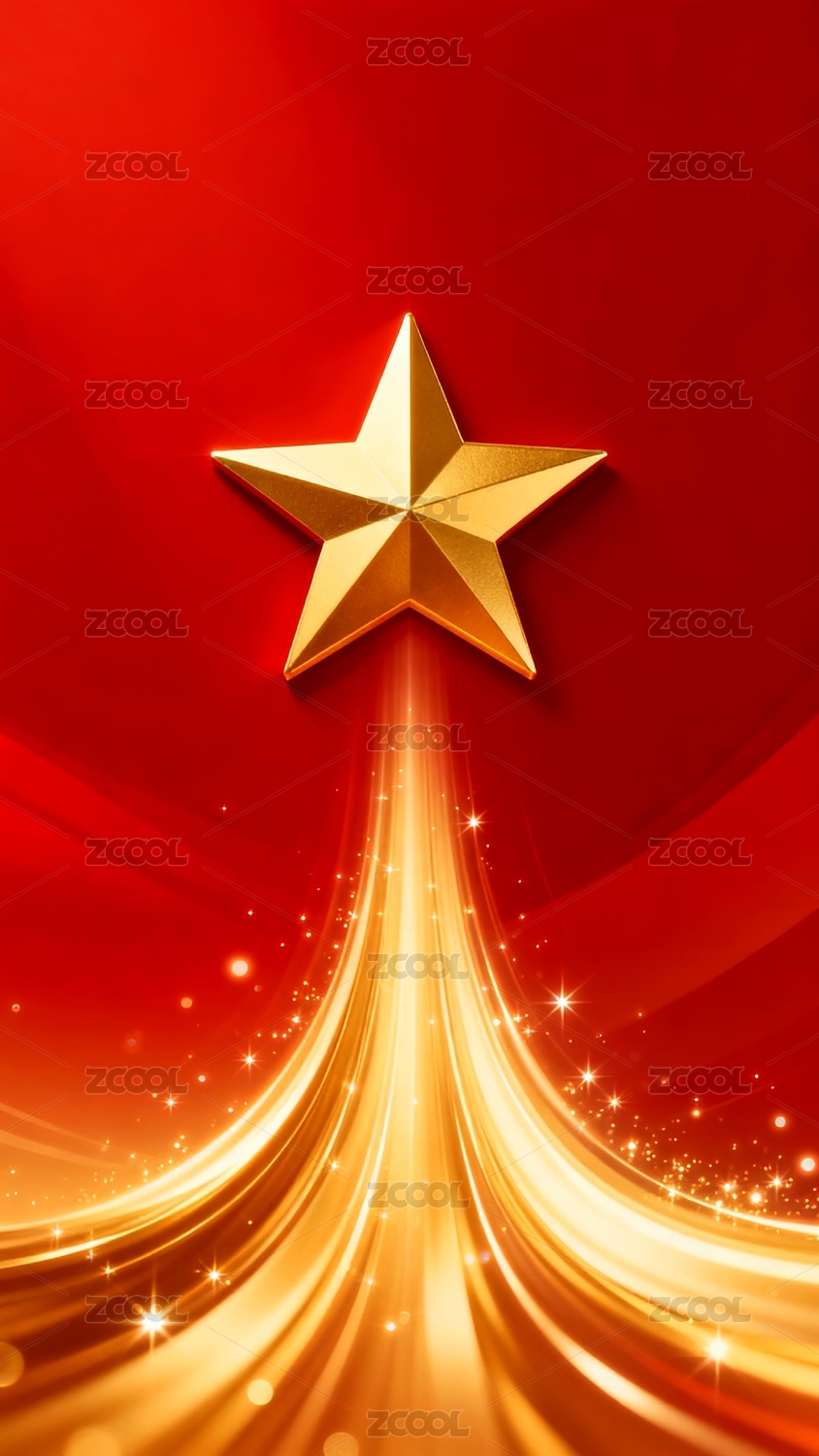 红星飘带红金背景场景