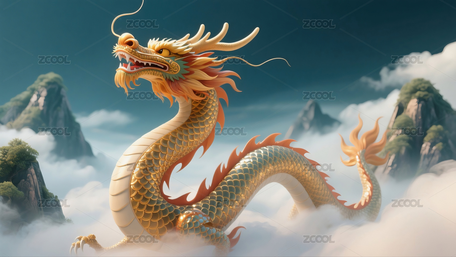 中国风金龙红色新年主题喜庆气氛装饰背景