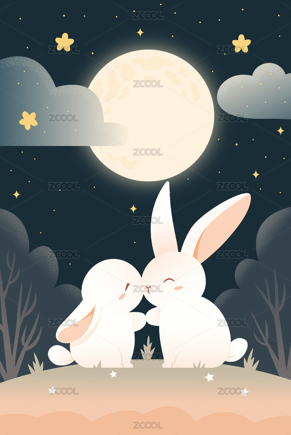 月满中秋节日玉兔愉快地赏月氛围感美景