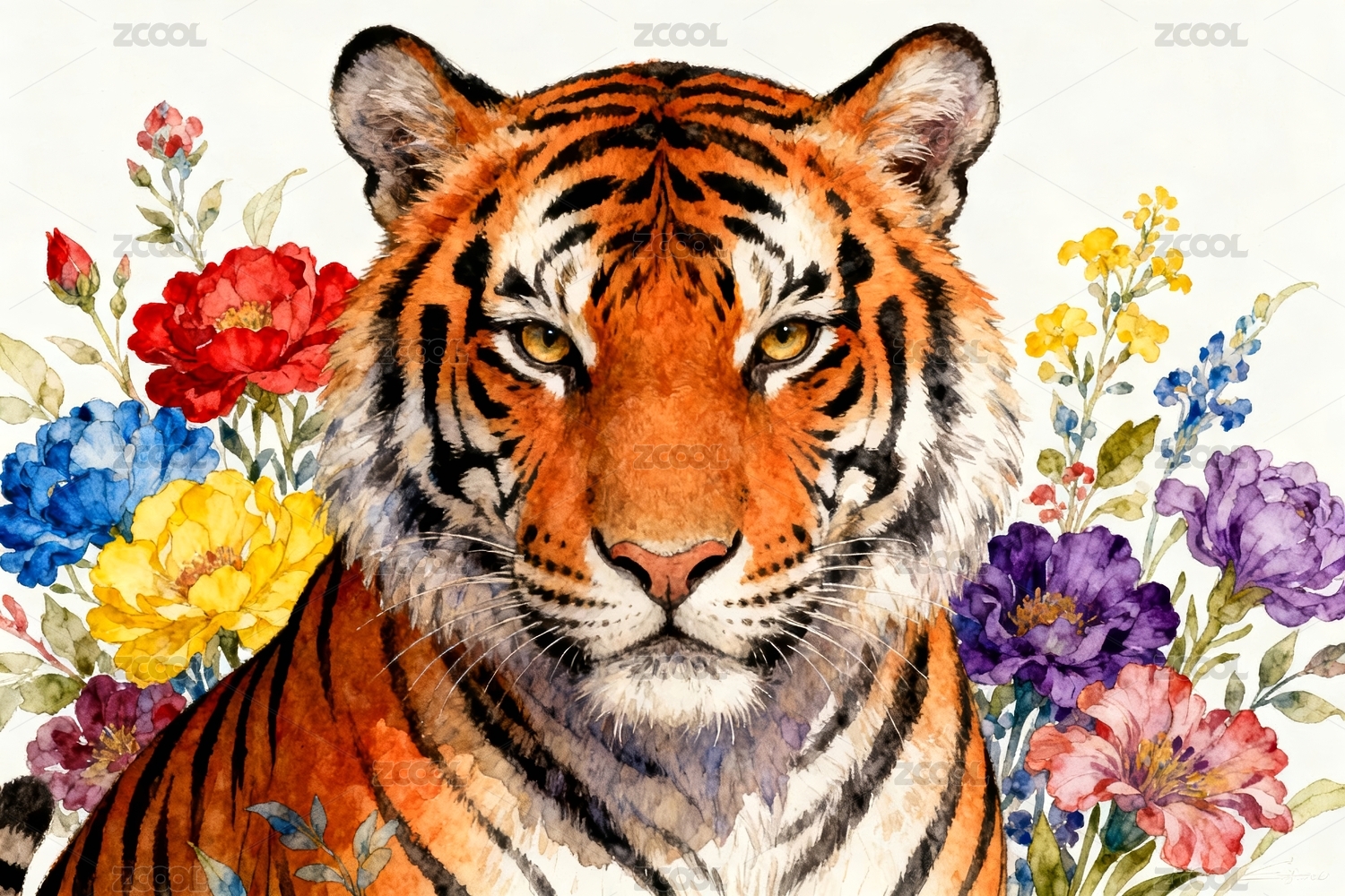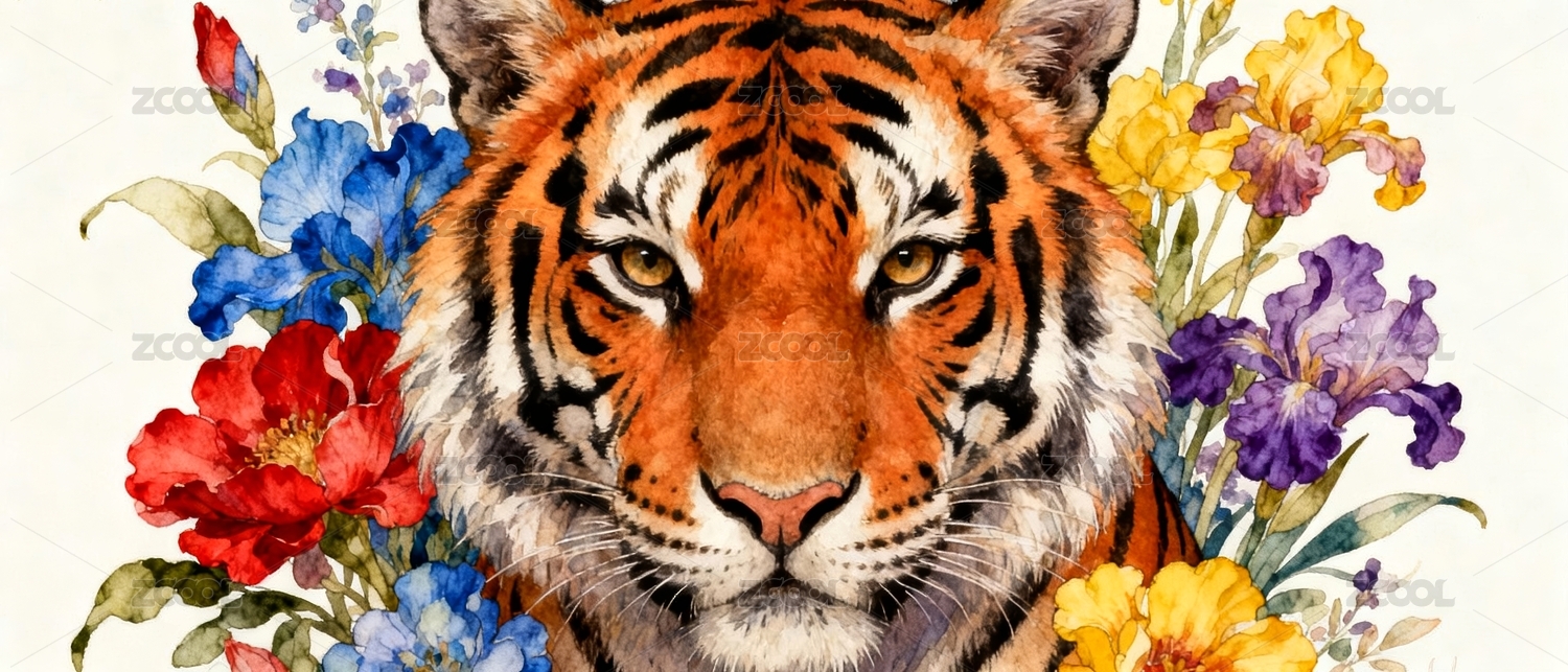 花卉与虎头创意插画