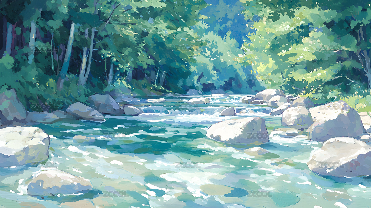 水彩溪流插画