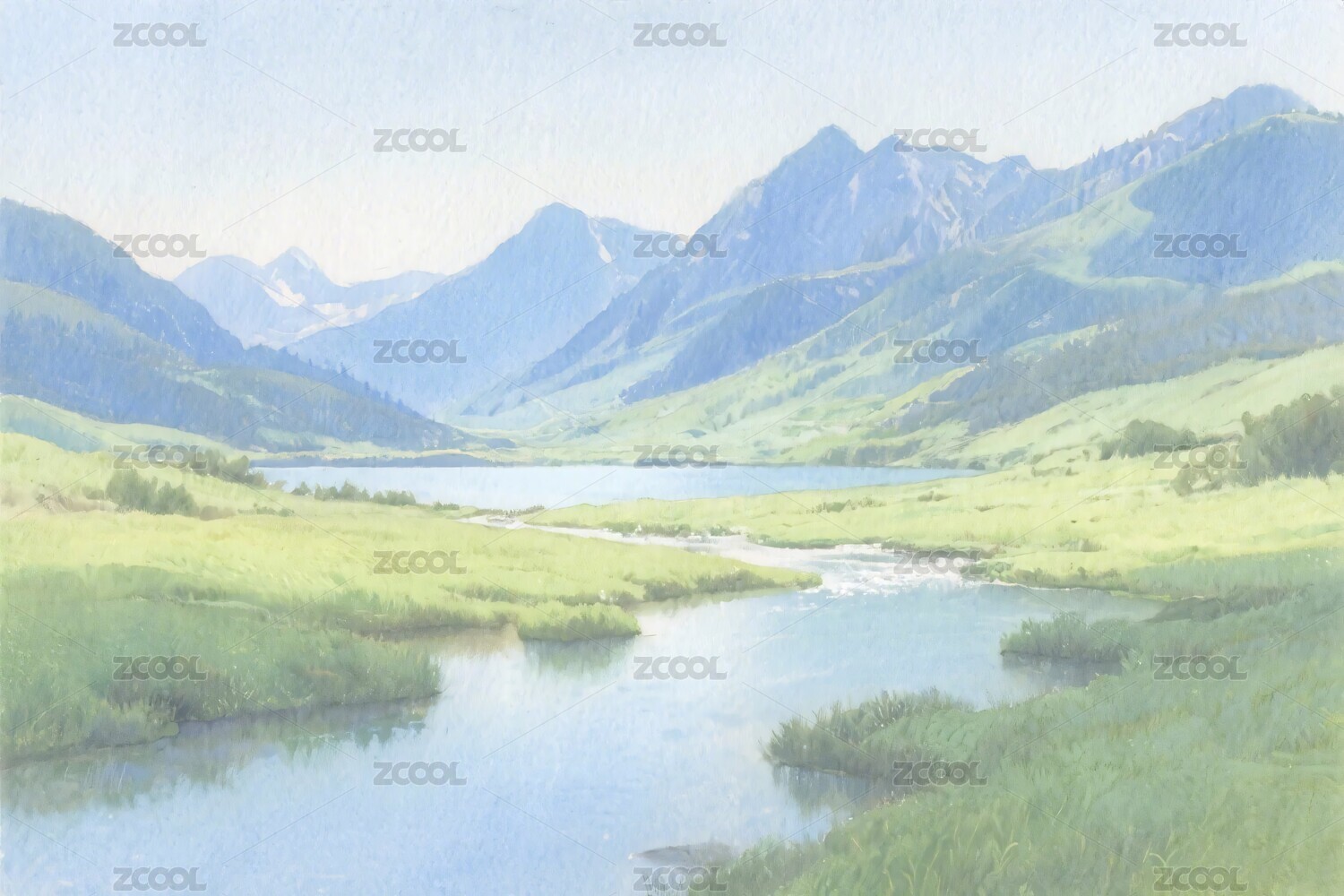山水风景水彩插画
