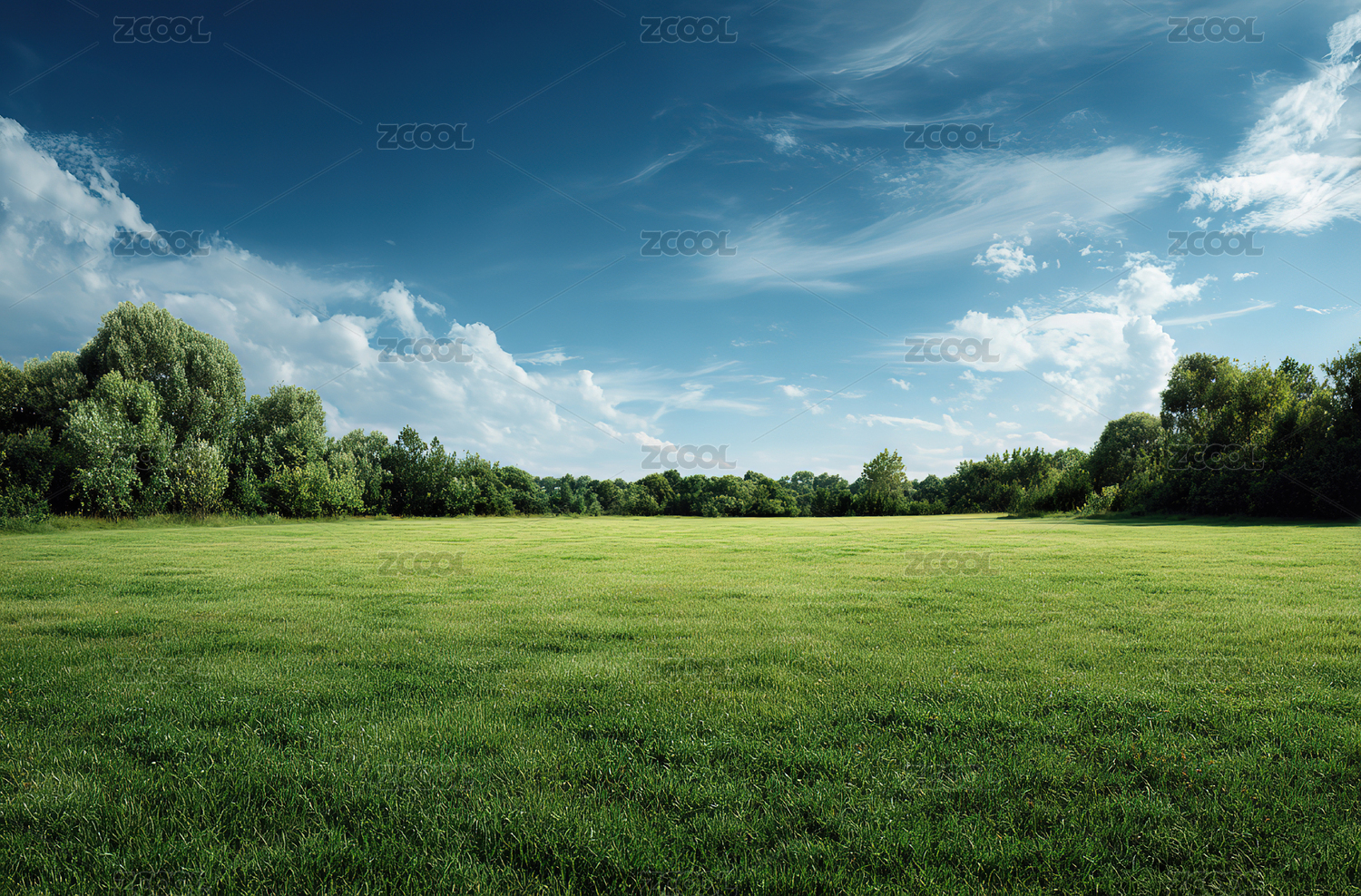 蓝天草地绿树林背景素材