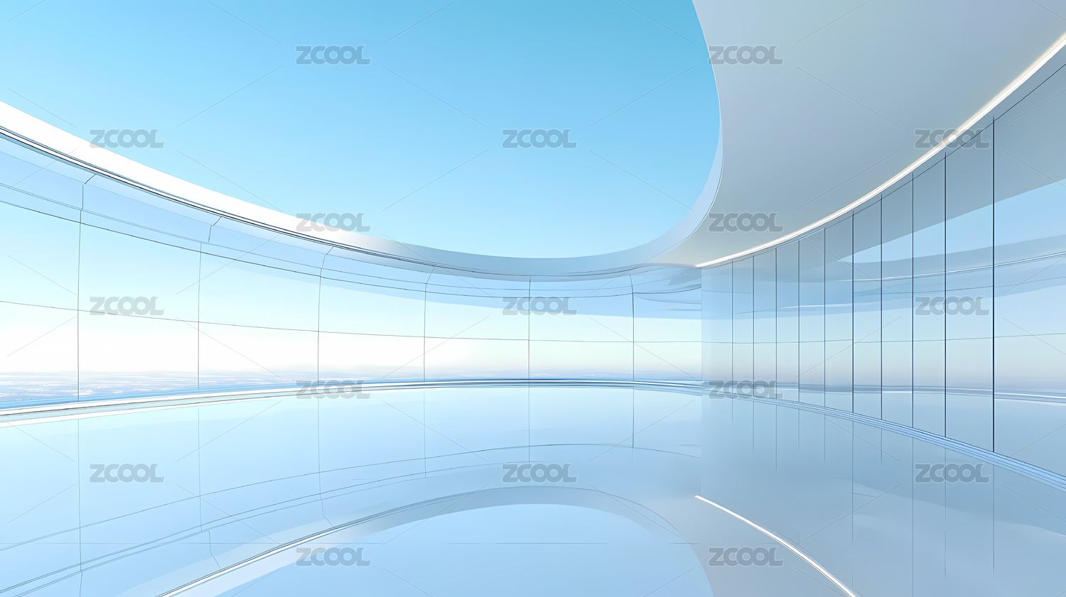 现代弧形玻璃建筑内部