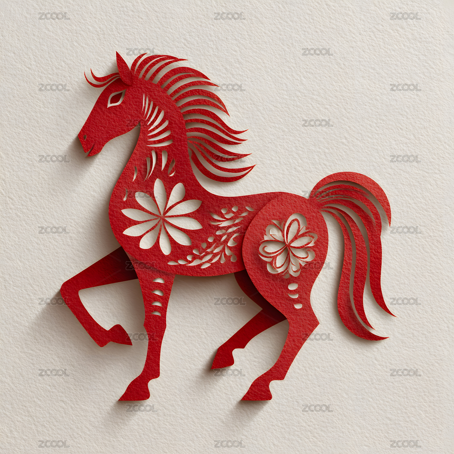 剪纸,剪纸风,生肖,马,马年,卡通,形象,纹理,中国风,纹样