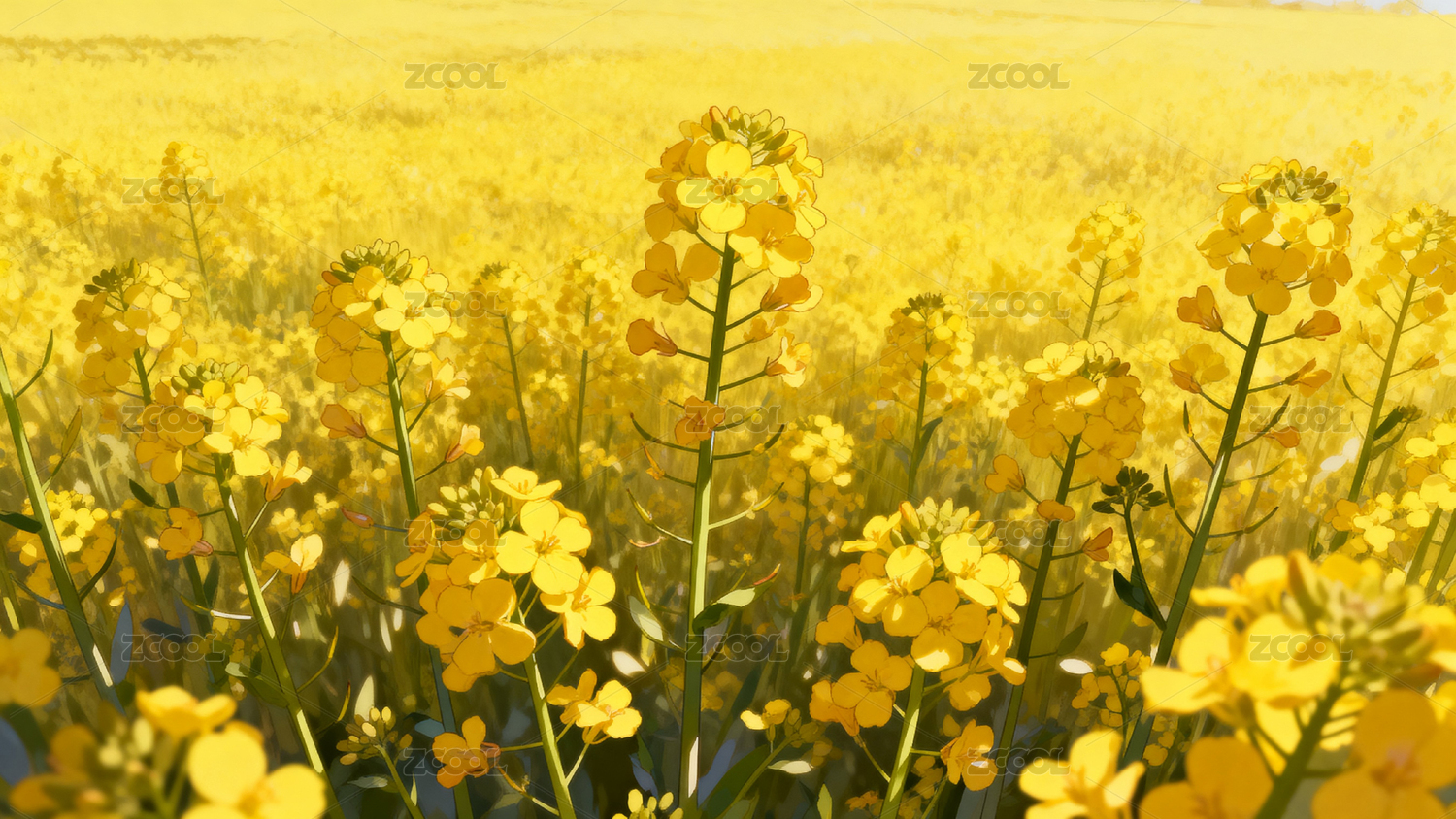 油菜花,田园,风景,自然,田野,田园风光,花卉,插画,风景画,景色