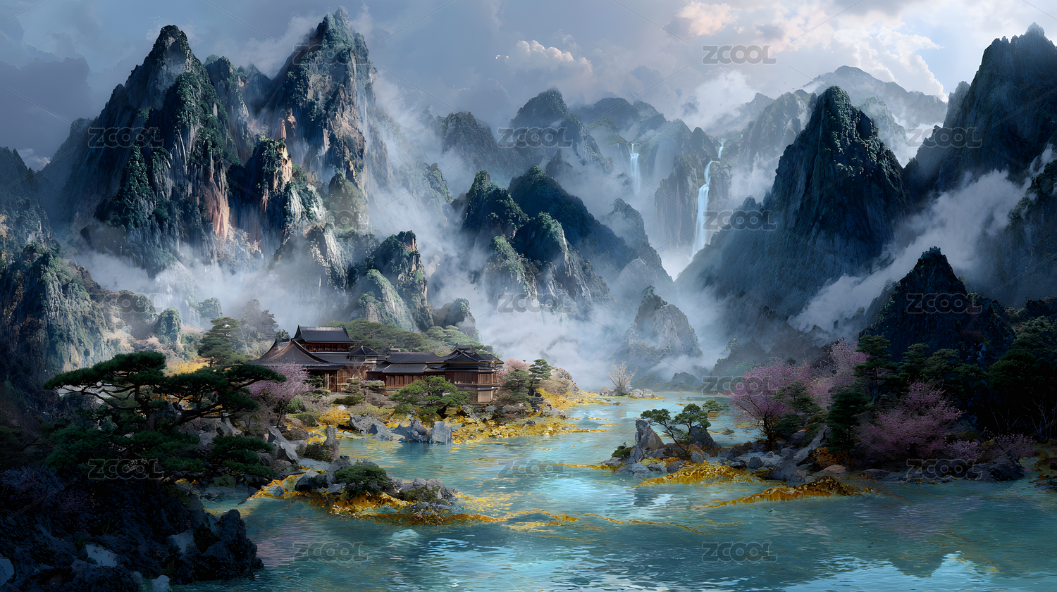 古风,动画,场景,风景,自然,山脉,山峰,绘画,山水,群山