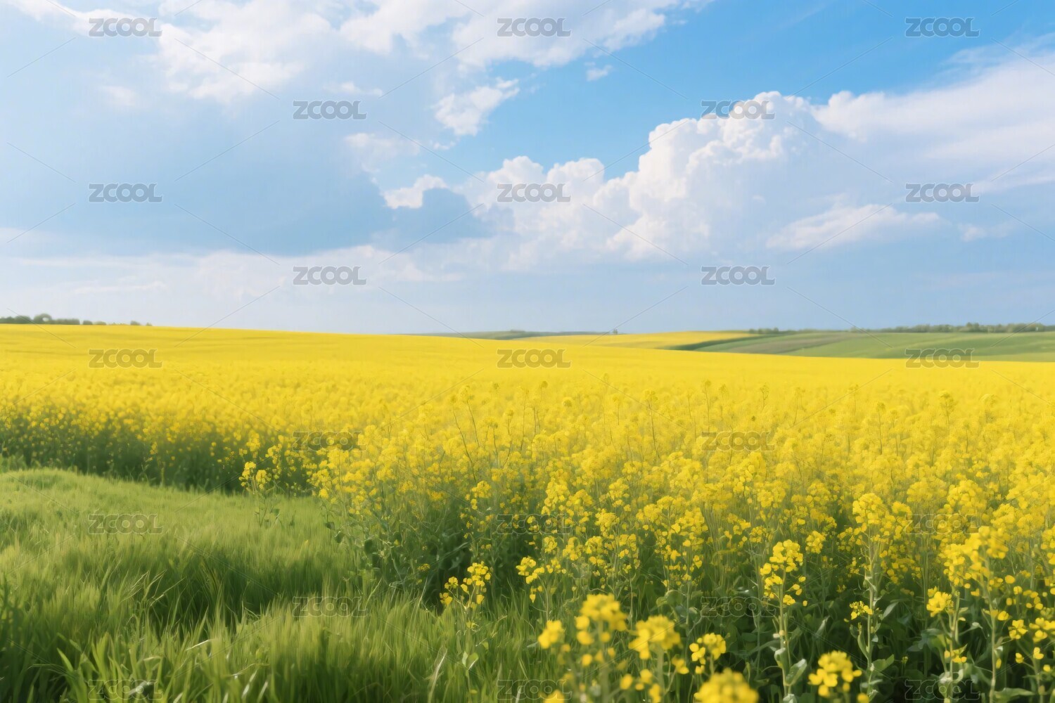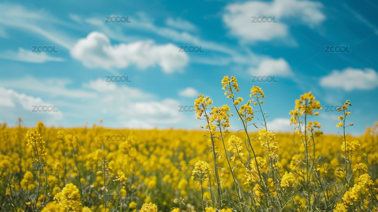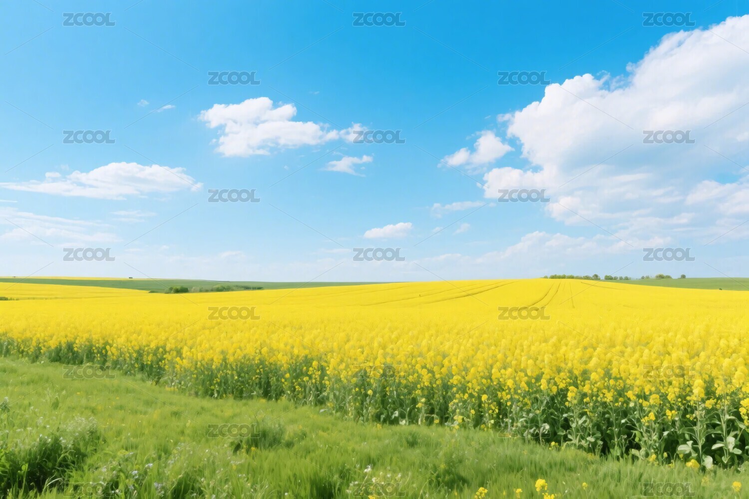 花海,田野,蓝天,白云,自然风景,田园,插画,矢量图,背景素材,油菜花