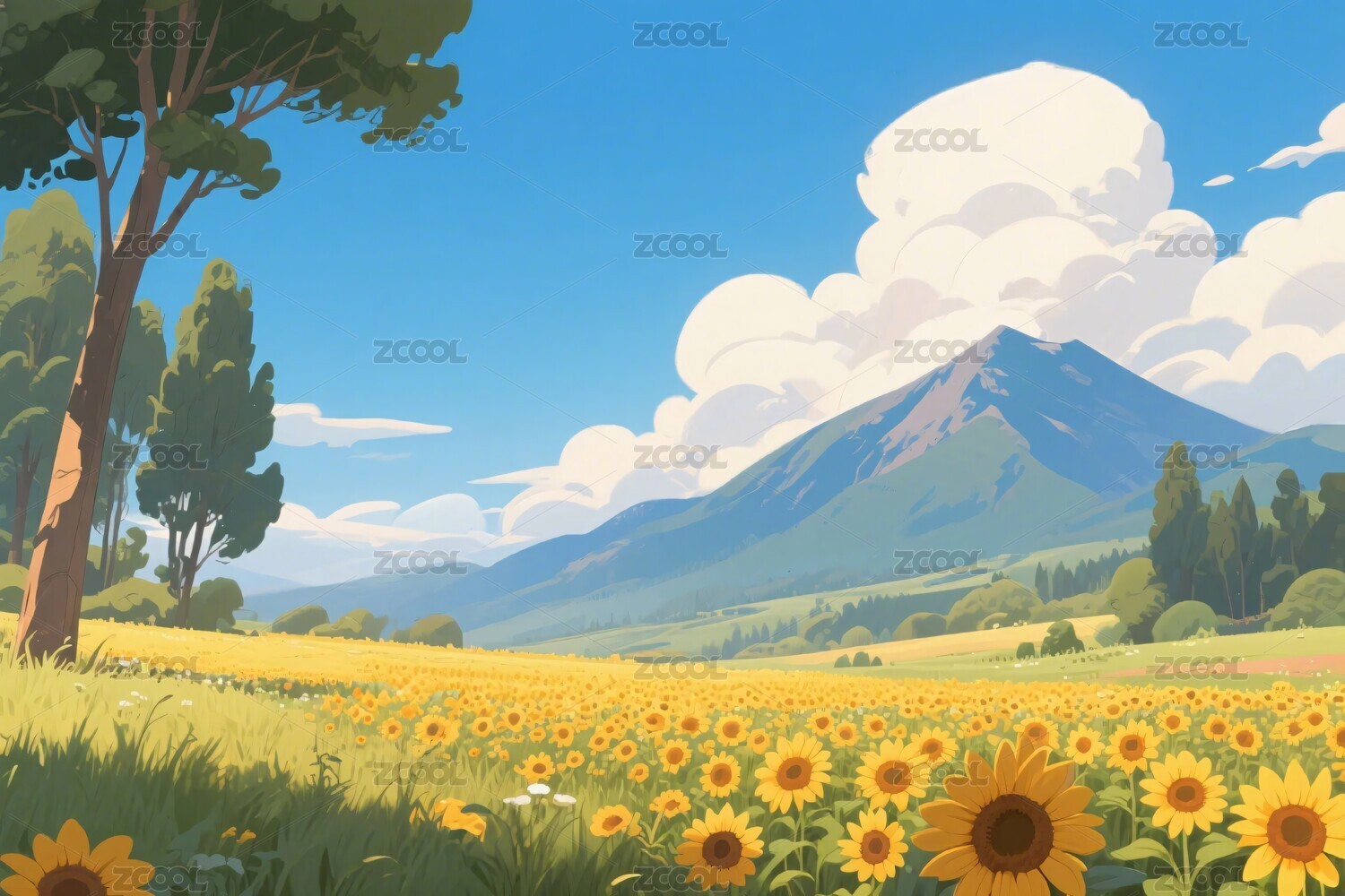 向日葵,花田,蓝天,森林,草地,自然,风景,插画,模板,自然风景