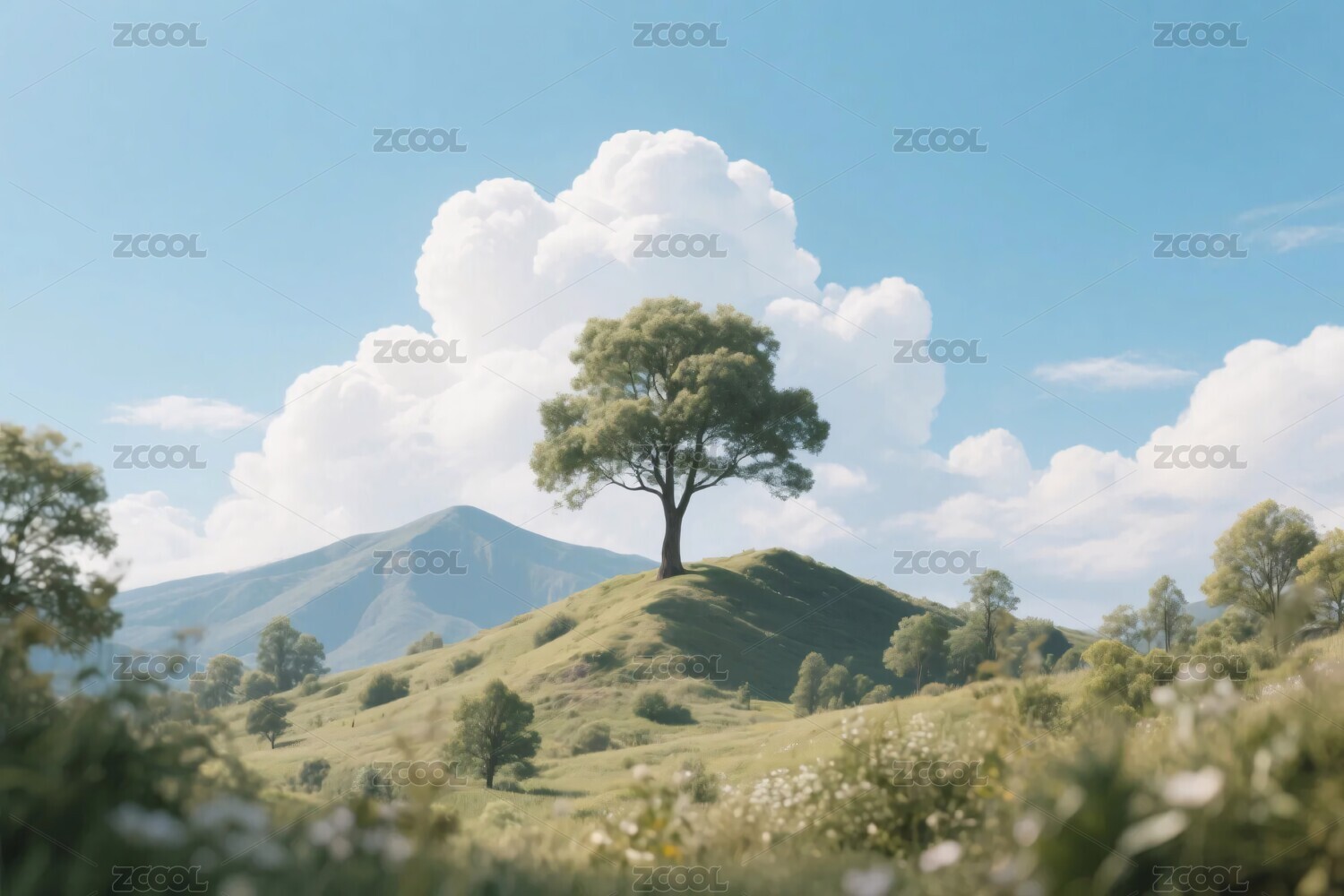 草原孤树山水风景
