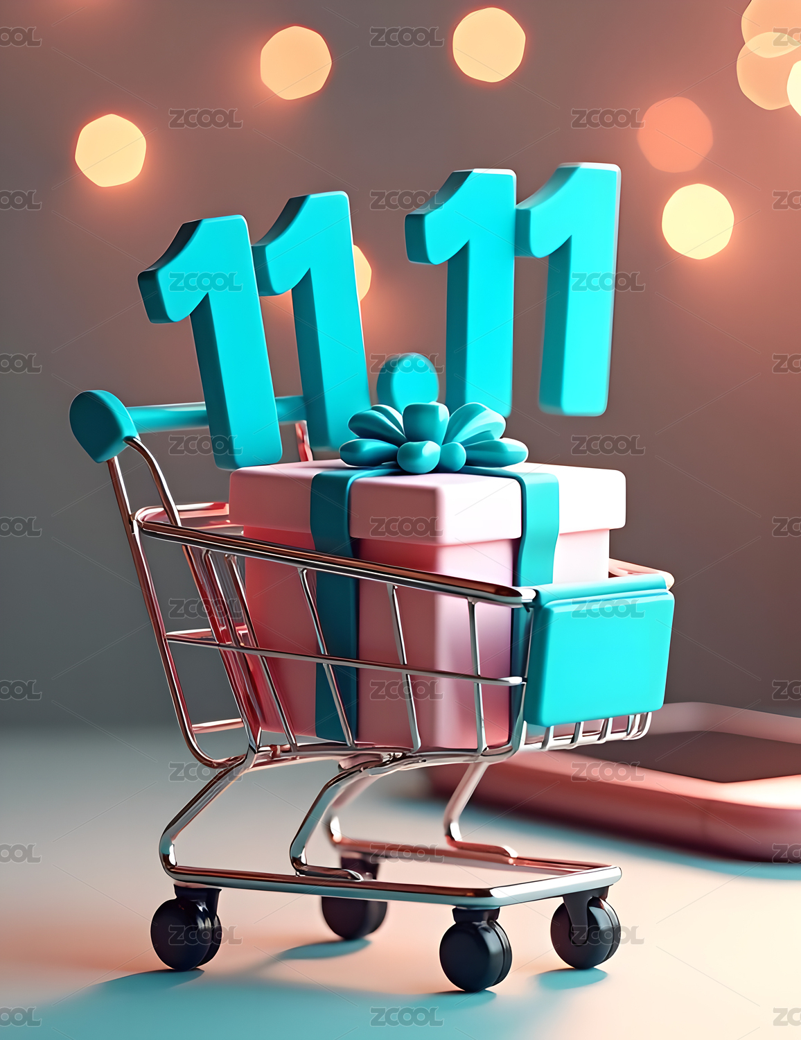 双十一11购物粉色电商3D立体建模商品