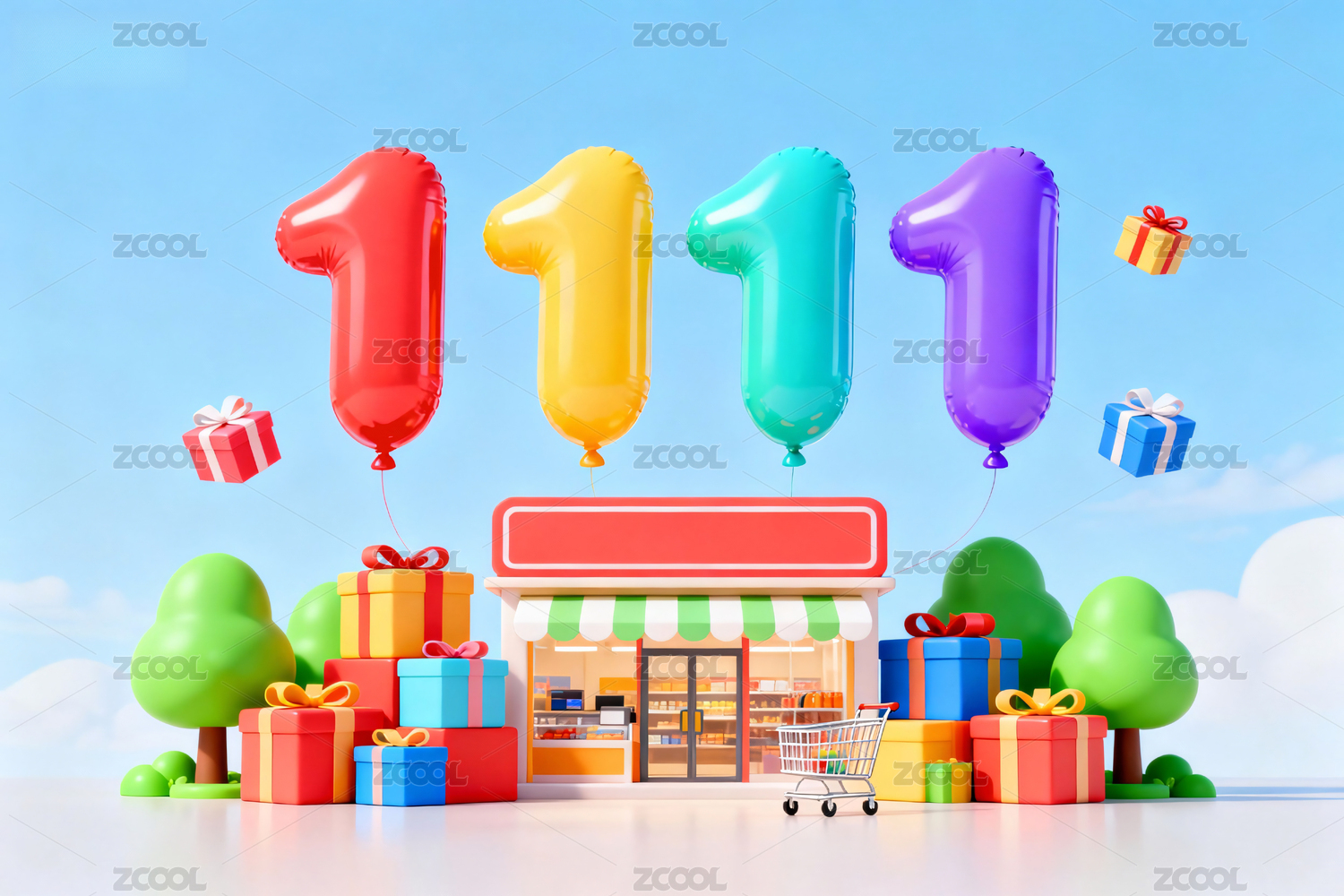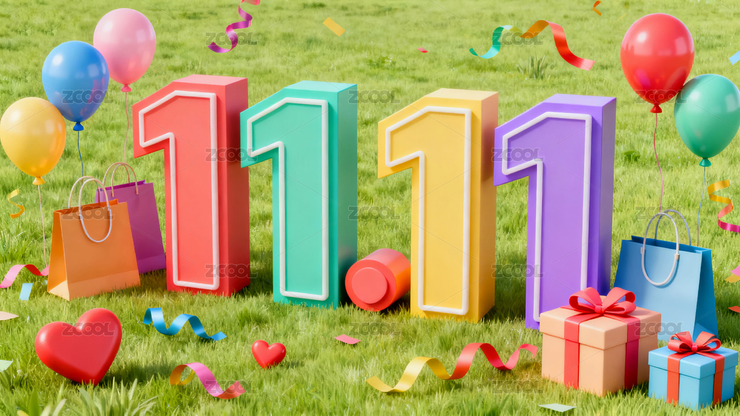 11.11,双11,节日,背景图,气球,购物袋,礼物盒,彩带,购物节,电商