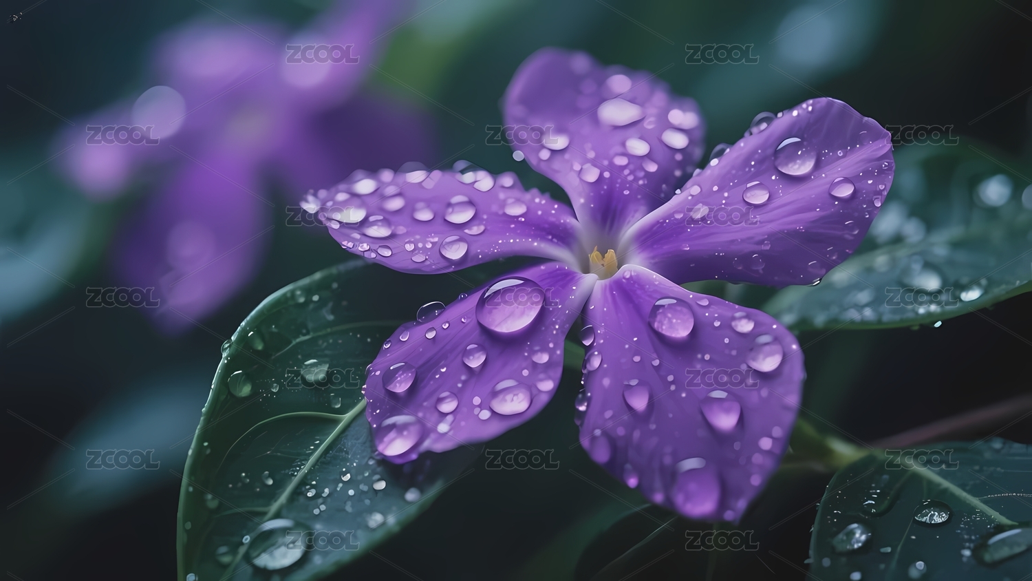 自然,花,鲜花,紫色,绿叶,水珠,雨后