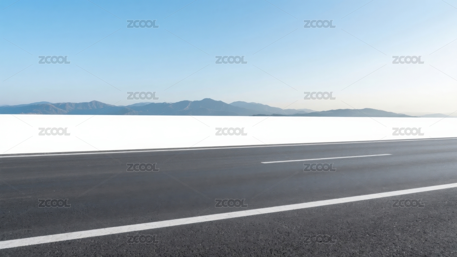 中国新疆蓝天下山脉自然风光和空的沥青道路