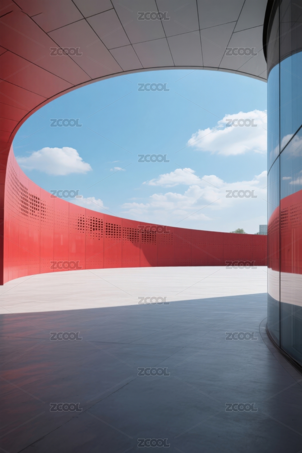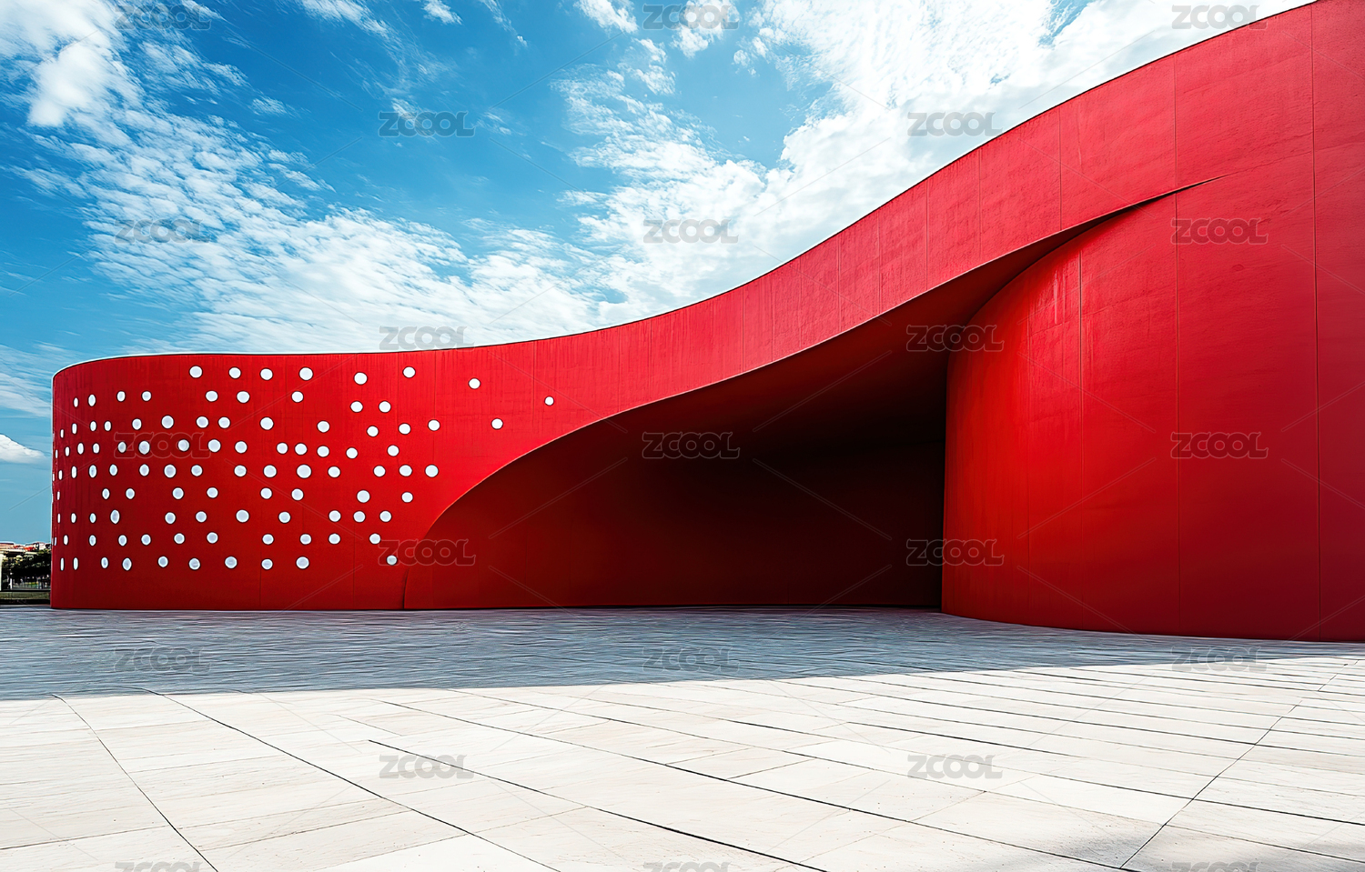 云,天空,建筑,白色,地面,现代,设计,弧形,蓝色,红色