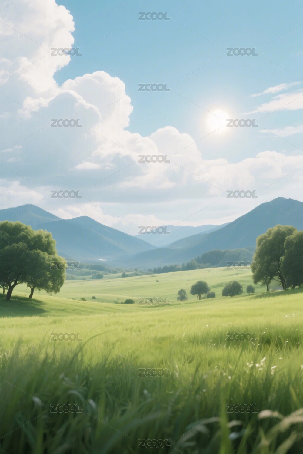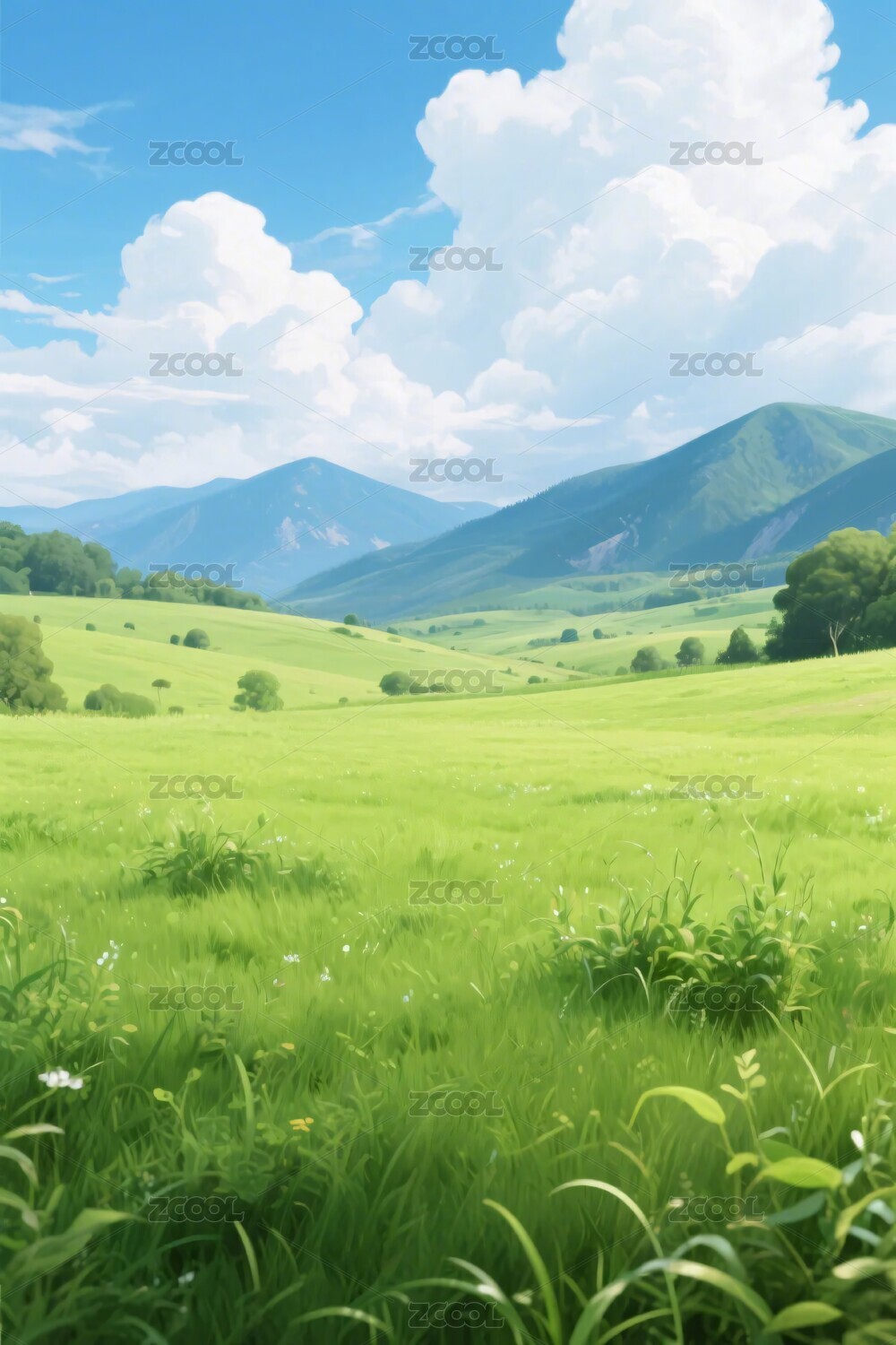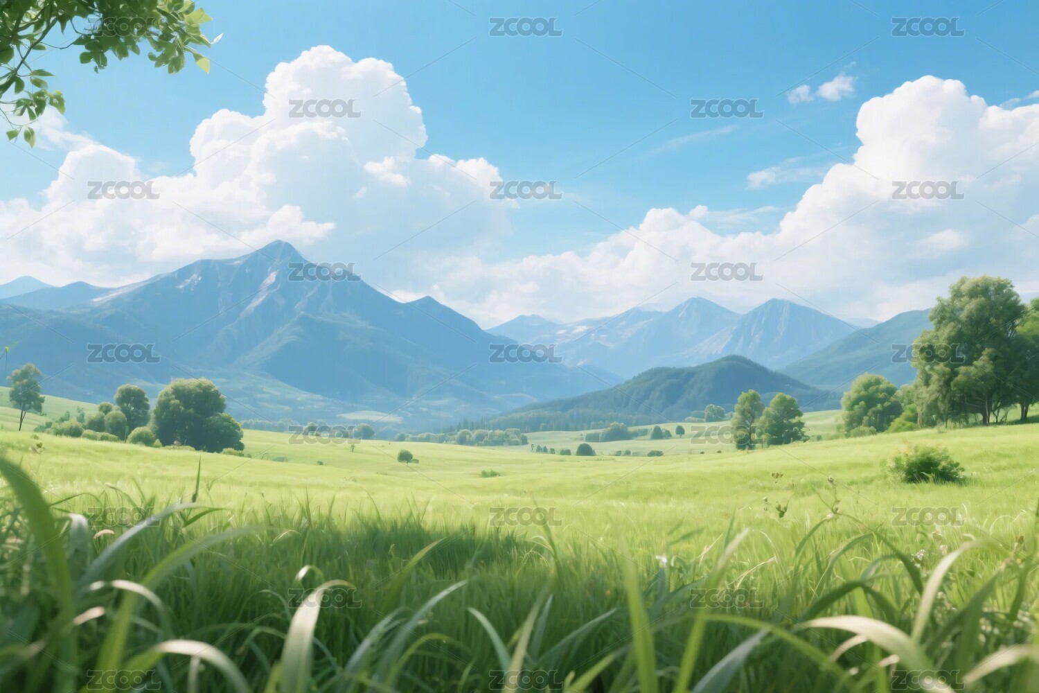 草地,天空,云朵,山脉,树木,田野,自然,风景,宁静,田园