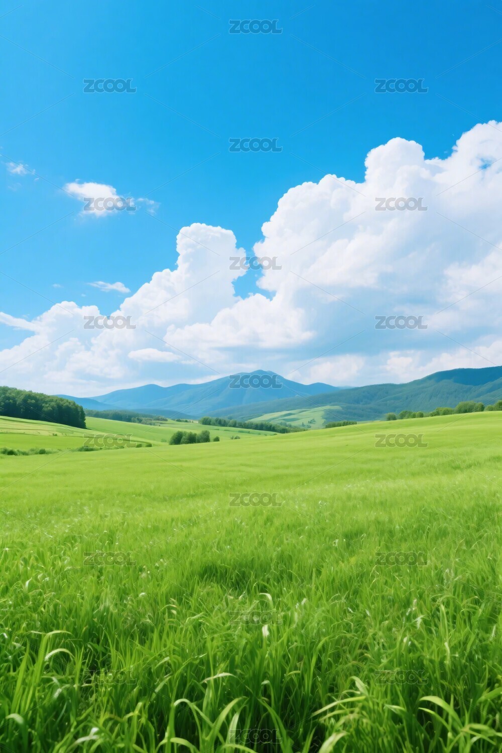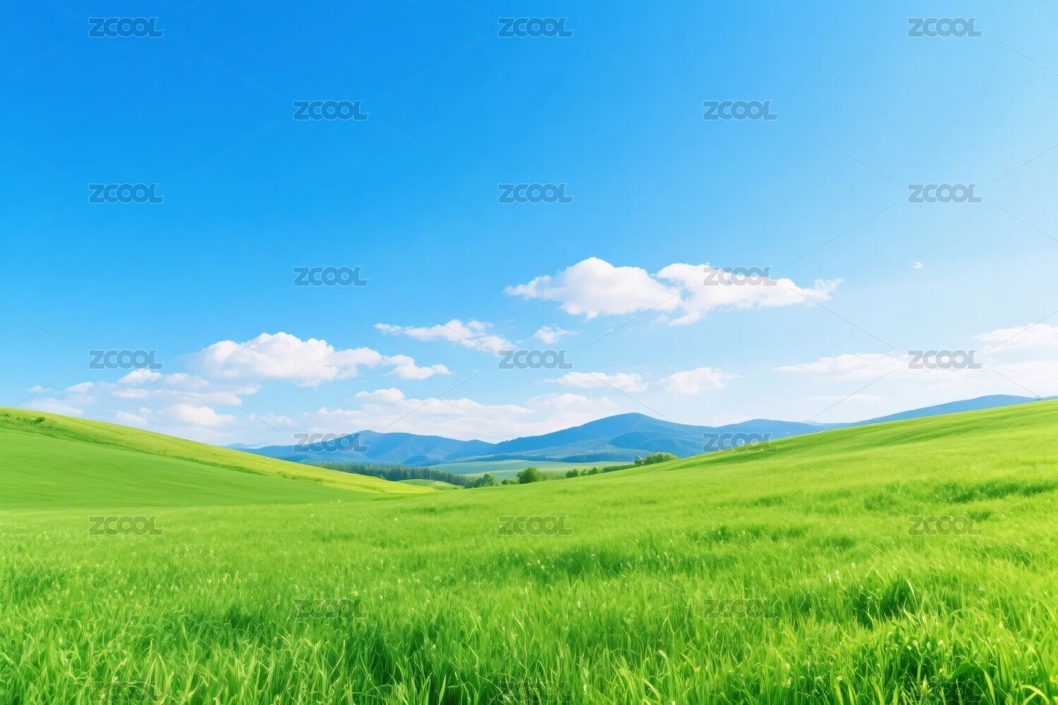 绿色田野的宁静牧歌 蓝天白云下的希望田野