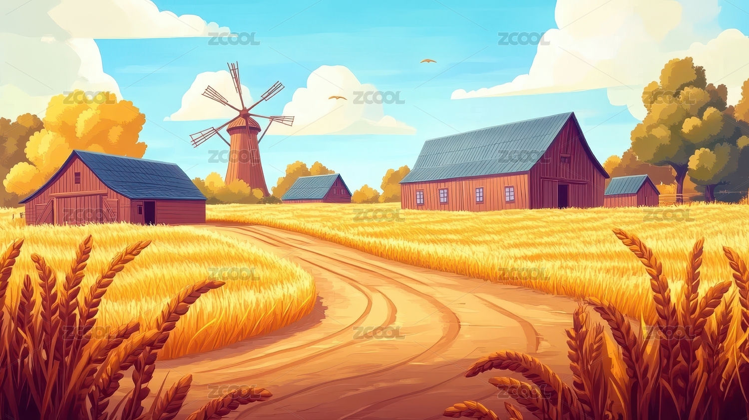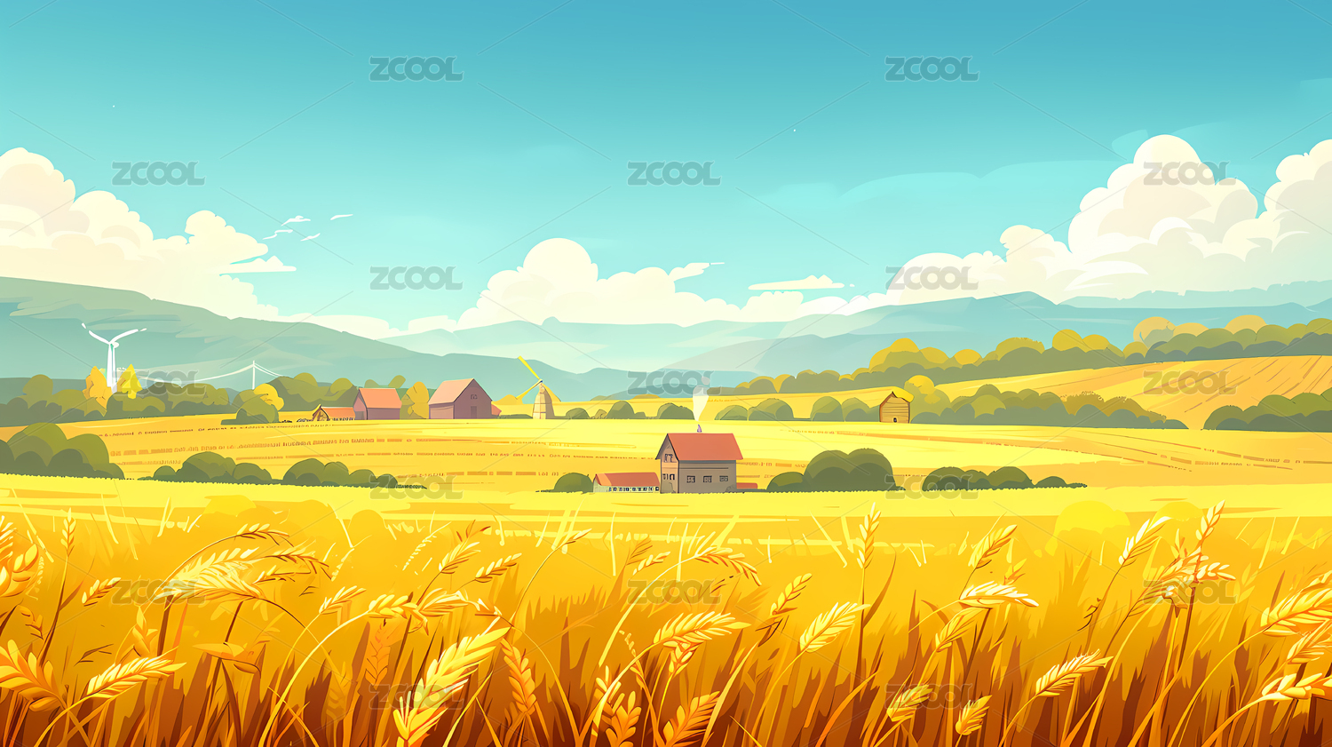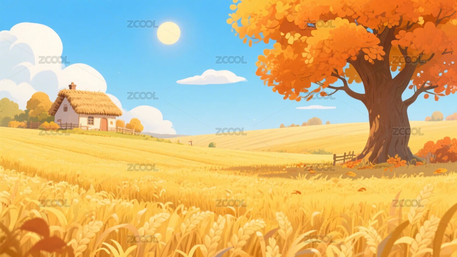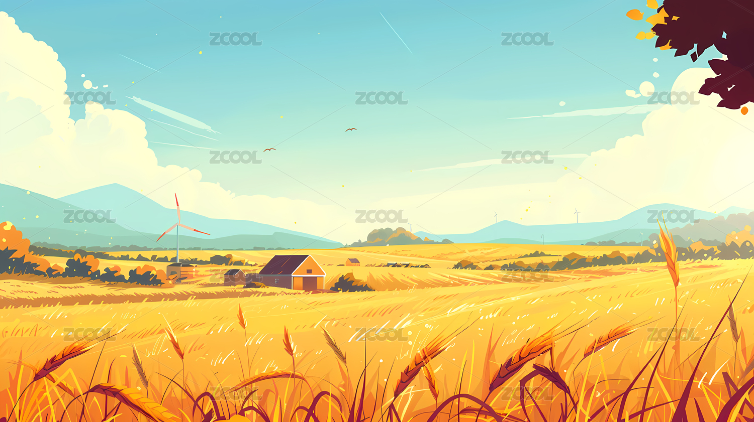 秋天麦田插画