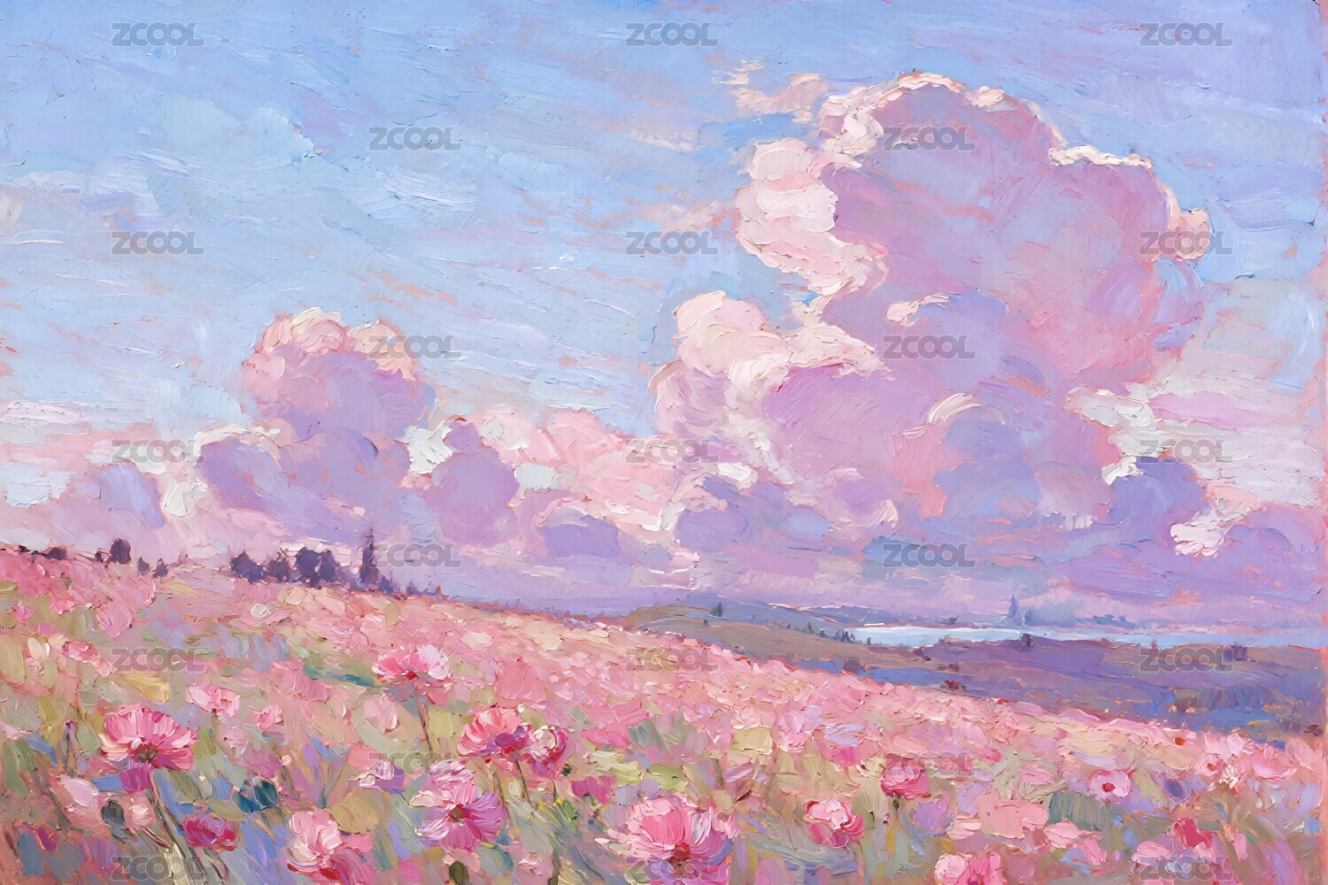 田园花海风景油画
